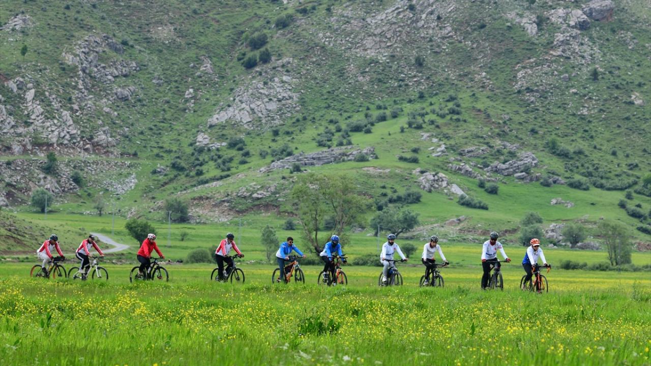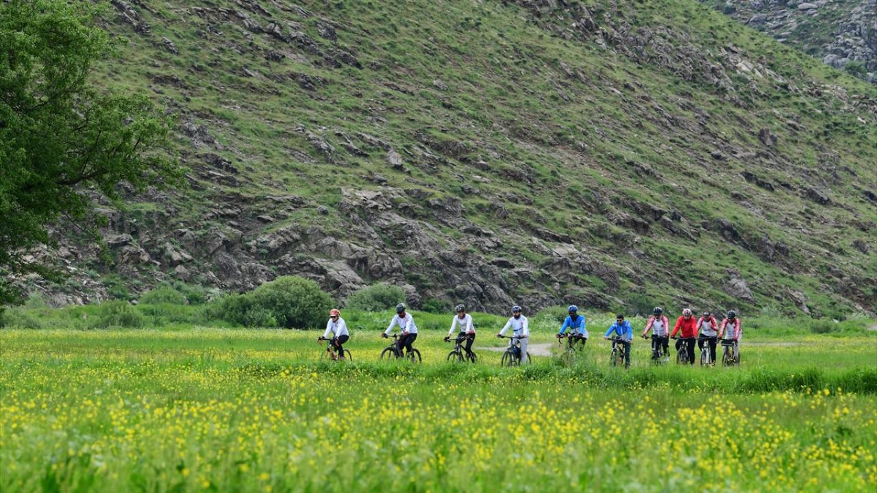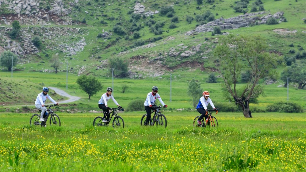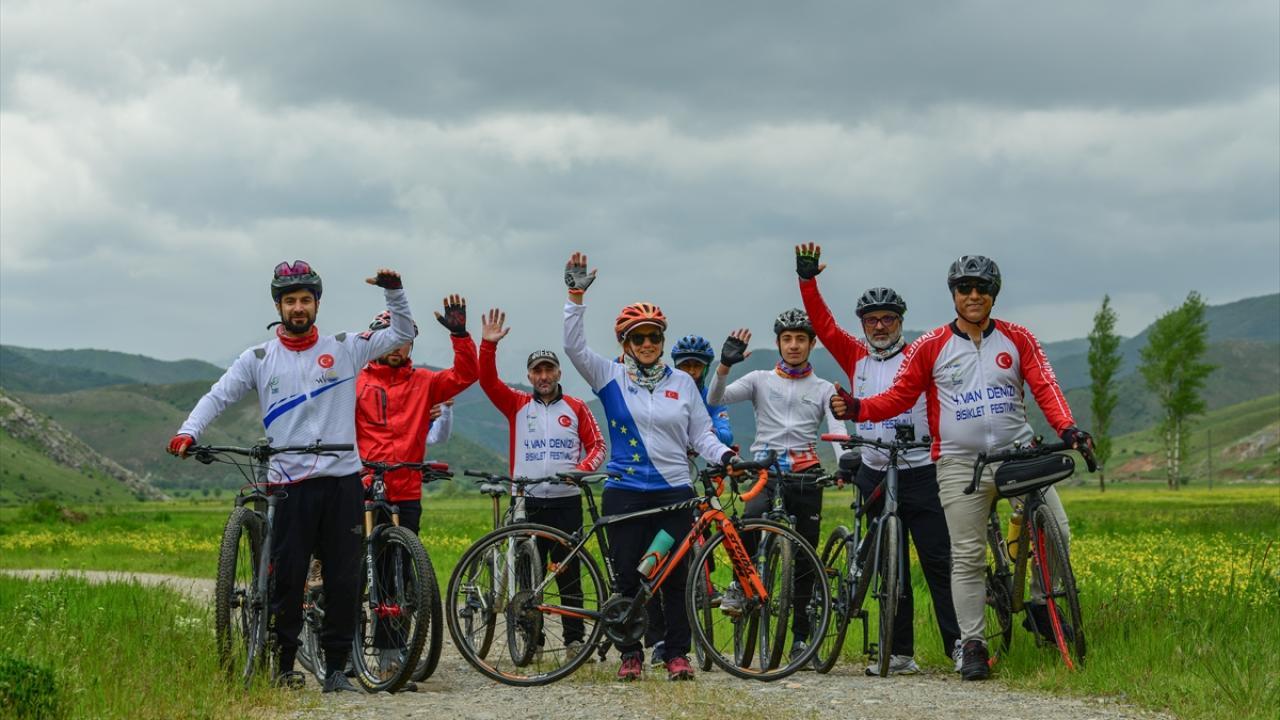 Van gölü aktivistleri, menderesler arasında uzayıp giden kıvrımlı yollarda bisikletleri ile gezi yaptı.