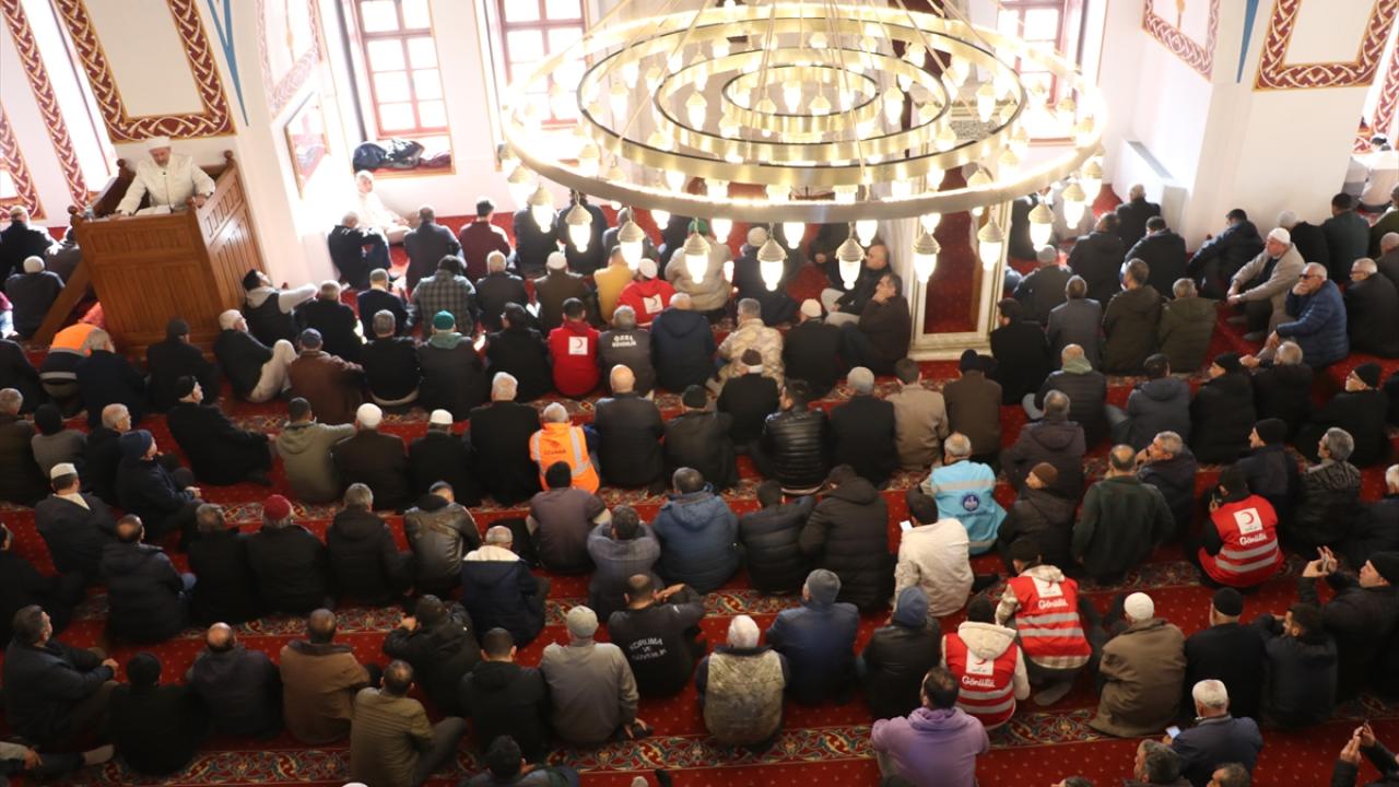 Cumhurbaşkanı Recep Tayyip Erdoğan`ın katılımıyla 27 Aralık`ta ibadete açılan camide, 6 Şubat 2023`teki afetin ardından bugün ilk cuma namazı kılındı.
