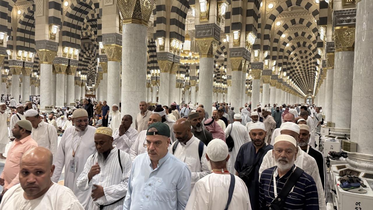 Hacılar, Mekke`den sonraki ikinci durakları olan Medine`de otellerine yerleşmelerinin ardından ilk olarak Mescid-i Nebevi`ye (Peygamber`in mescidi) giderek Hazreti Peygamber`i selamlıyor.
