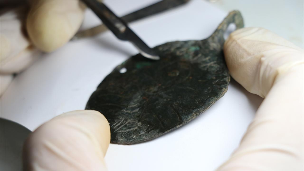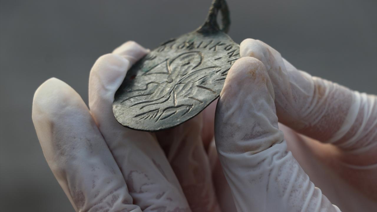 Geç Kalkolitik, Roma ve Erken Bizans dönemlerinde yerleşim yeri olarak kullanılan Karabük'ün Eskipazar ilçesindeki Hadrianopolis Antik Kenti'nde sürdürülen kazılarda, yaklaşık 1600 yıllık Hazreti Süleyman betimli kolye ucu gün yüzüne çıkarıldı.
