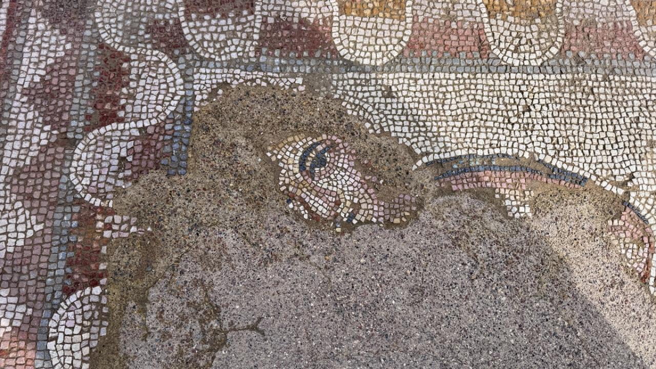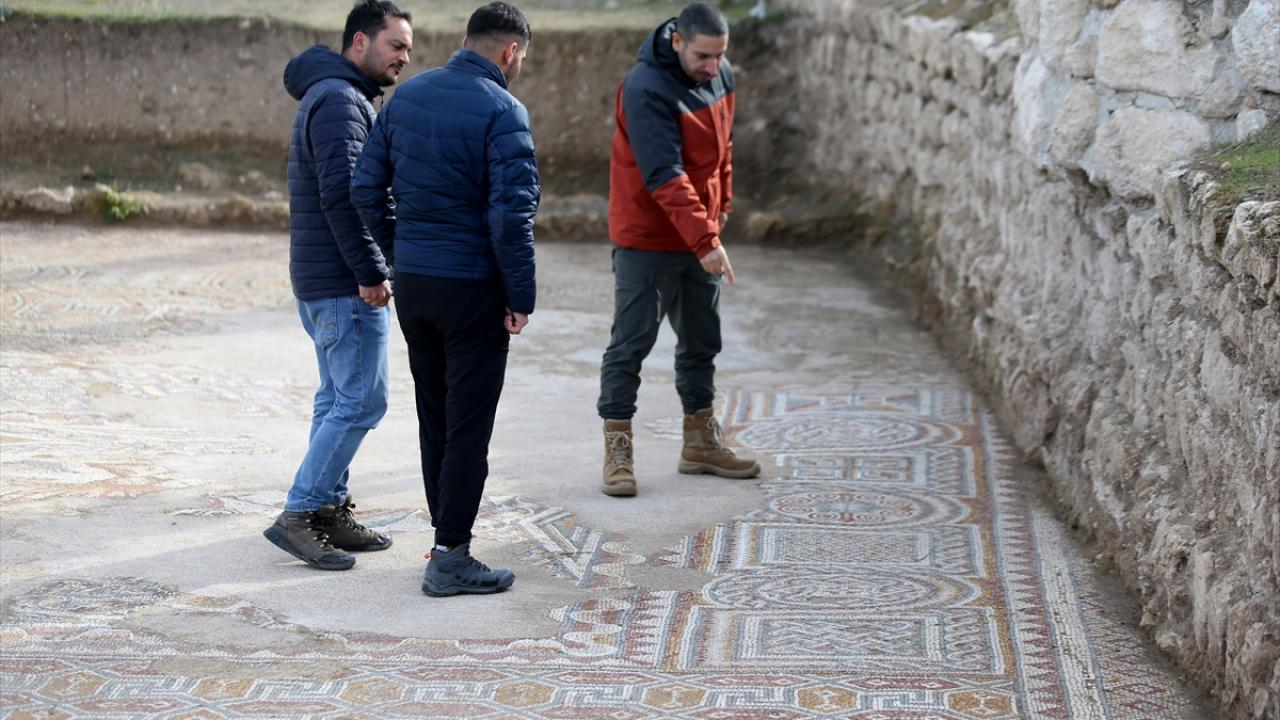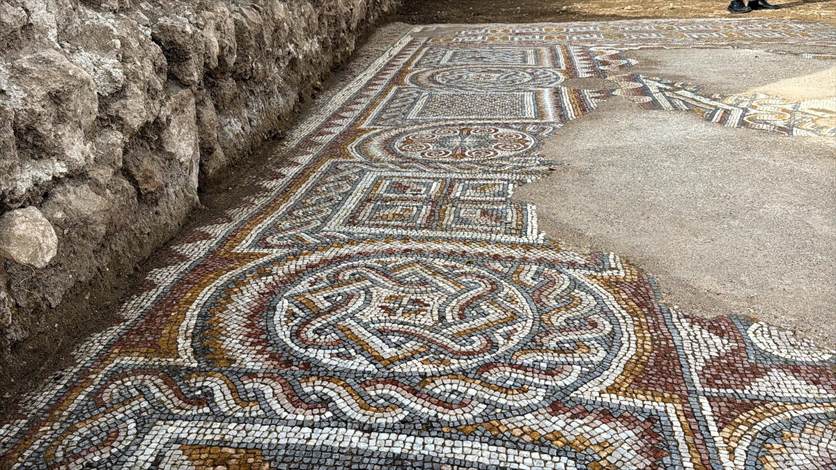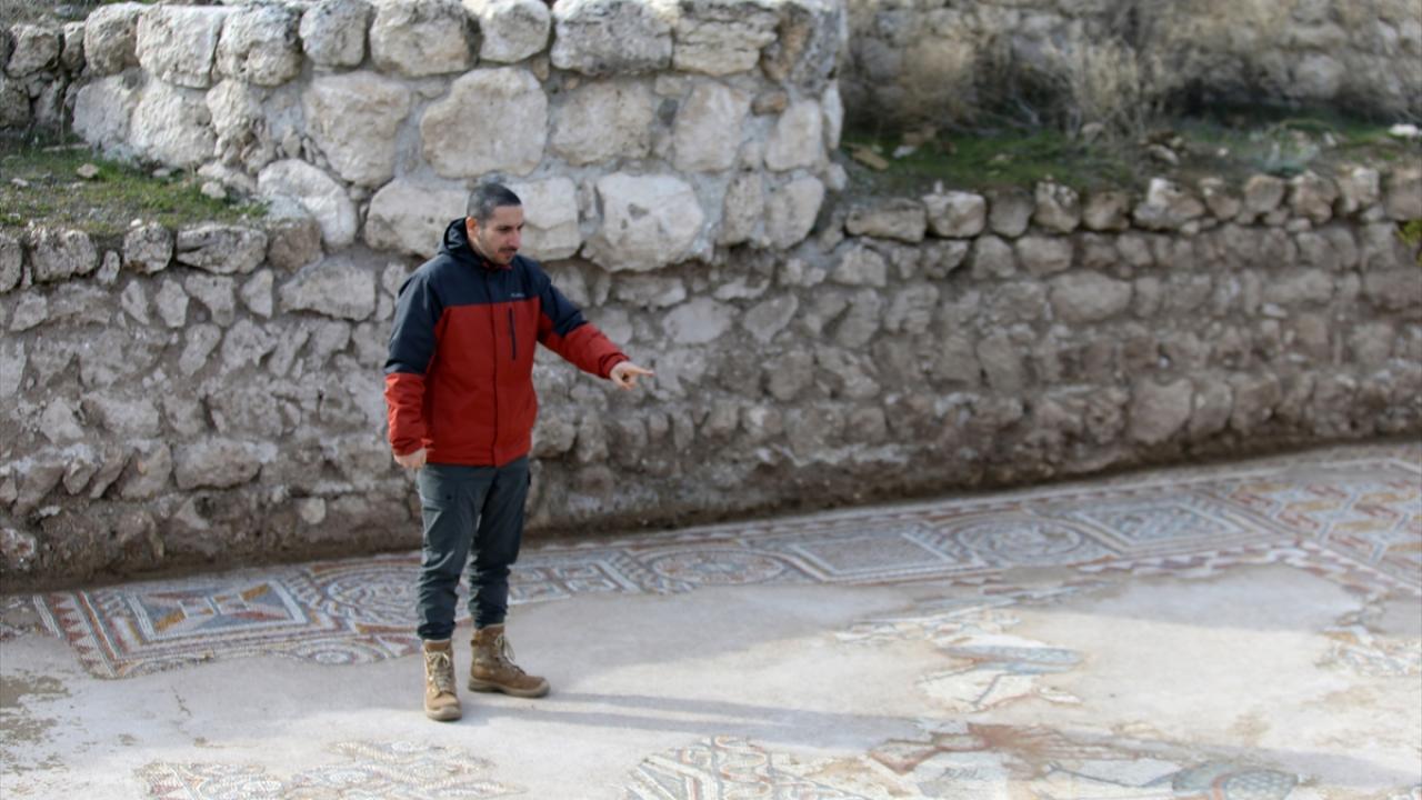 "Dalgalı kurdele motifi var. 8 kollu yıldız merkezde işlenmiş ve bu sekiz kollu yıldızın tam ortasına da antitetik duruşlu tavus kuşları sahnelenmiş. Yine çeşitli geometrik motifler işlenmiş burada. Süleyman düğümleri var panolar içerisinde. Aslında burada gerçekten mozaikler bir halı deseni gibi işlenmiş ve o hala canlılığını, o renkliliğini koruyarak da günümüze ulaşmış. Ziyaretçilerimizi bu mozaikleri görmeye davet ediyoruz. Şu anda mozaiklerimizin geçici üstlerini korumaya da alacağız ama bu yılın sonuna kadar inşallah ziyaretçilerimizin görebileceği bir şekilde de burayı teşhire açacağız."