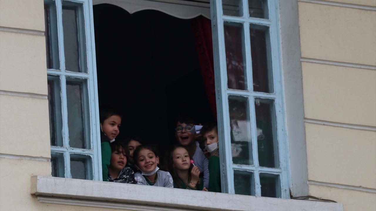 Bu sırada Gazi İlkokulunda bulunan öğrenciler pencereden develerin geçişini izledi.