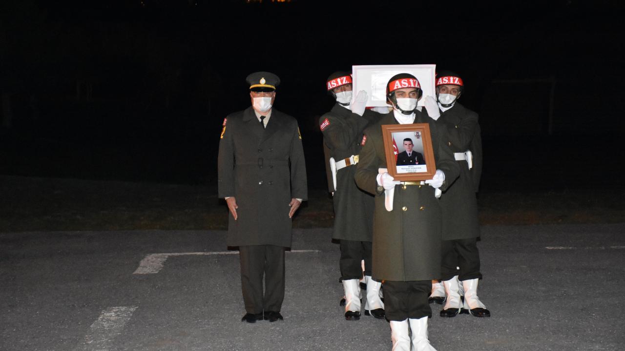 Şehidin naaşı, silah arkadaşları tarafından omuzda taşınarak helikoptere konuldu.