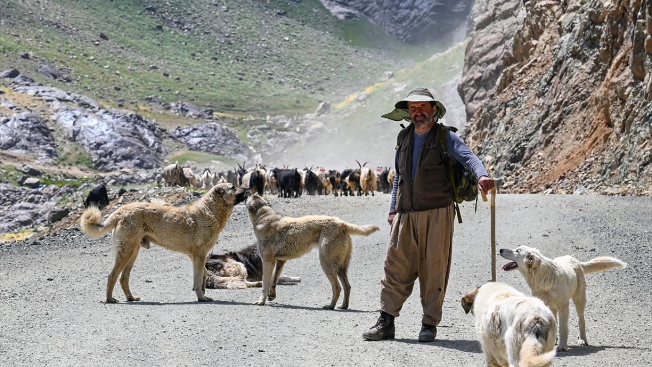 Yüksekova ilçesine bağlı Karabağ köyündeki besiciler de yaklaşık 2 bin küçükbaş hayvandan oluşan sürüyü, havanın ısınmasıyla İkiyaka Dağları`ndaki 3 bin 400 metre yükseklikteki yaylada otlatıyor.