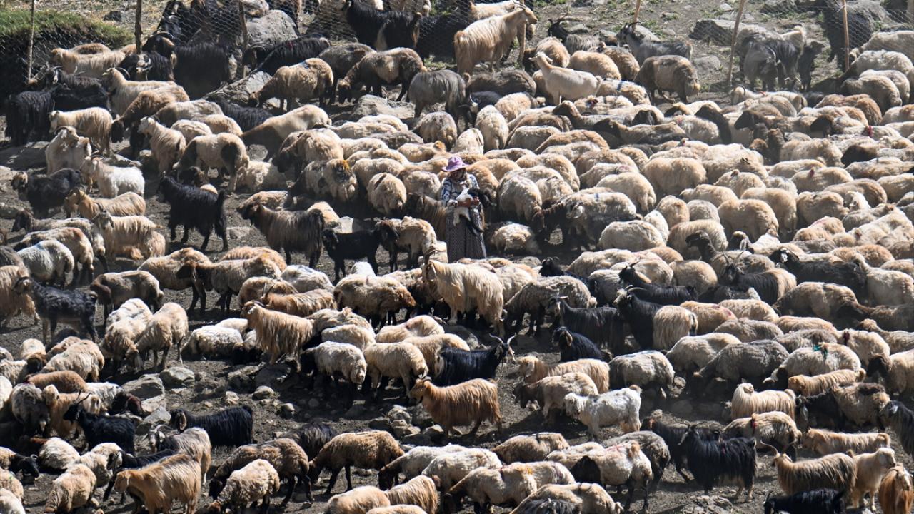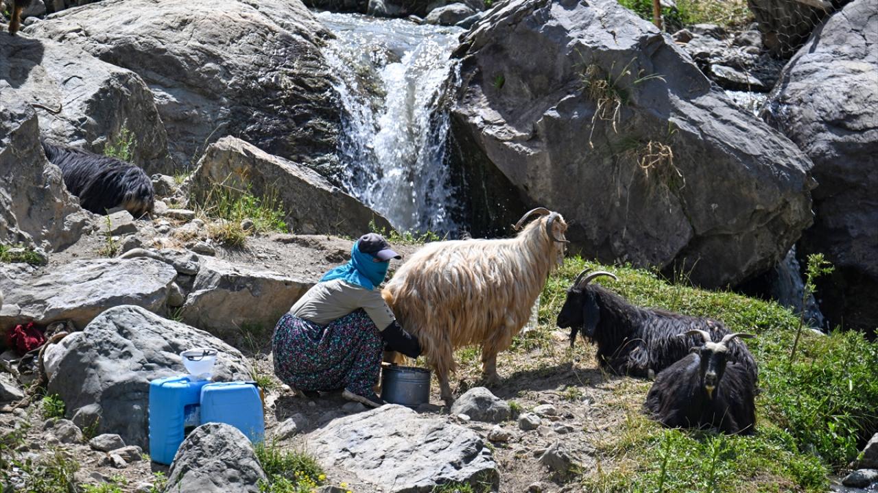 Küçükbaş hayvan yetiştiriciliğinin yaygın yapıldığı Hakkari'nin Yüksekova ilçesinde, İkiyaka Dağları'ndaki 3 bin 400 rakımlı yaylada otlatılan küçükbaş hayvanlar, zorlu doğa koşullarına rağmen her gün engebeli araziden indirilerek sağım alanına ulaştırılıyor.