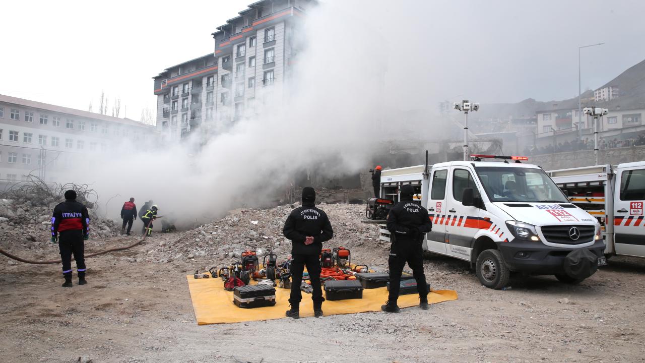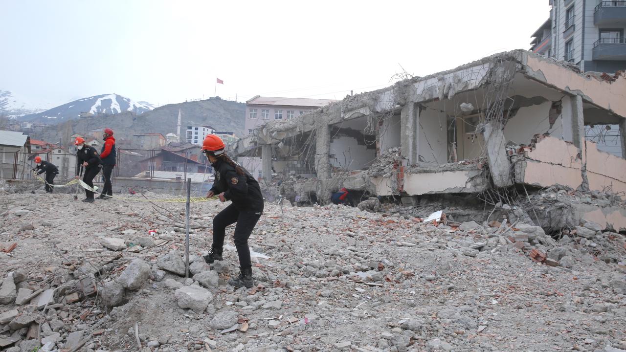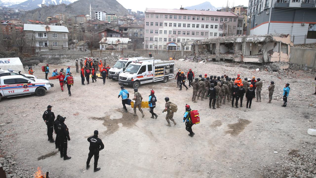 Hakkari'de Afet ve Acil Durum Müdürlüğü (AFAD) koordinesinde, 10 gündür arama kurtarma eğitimine tabi tutulan emniyet mensuplarının da katılımıyla deprem tatbikatı düzenlendi.