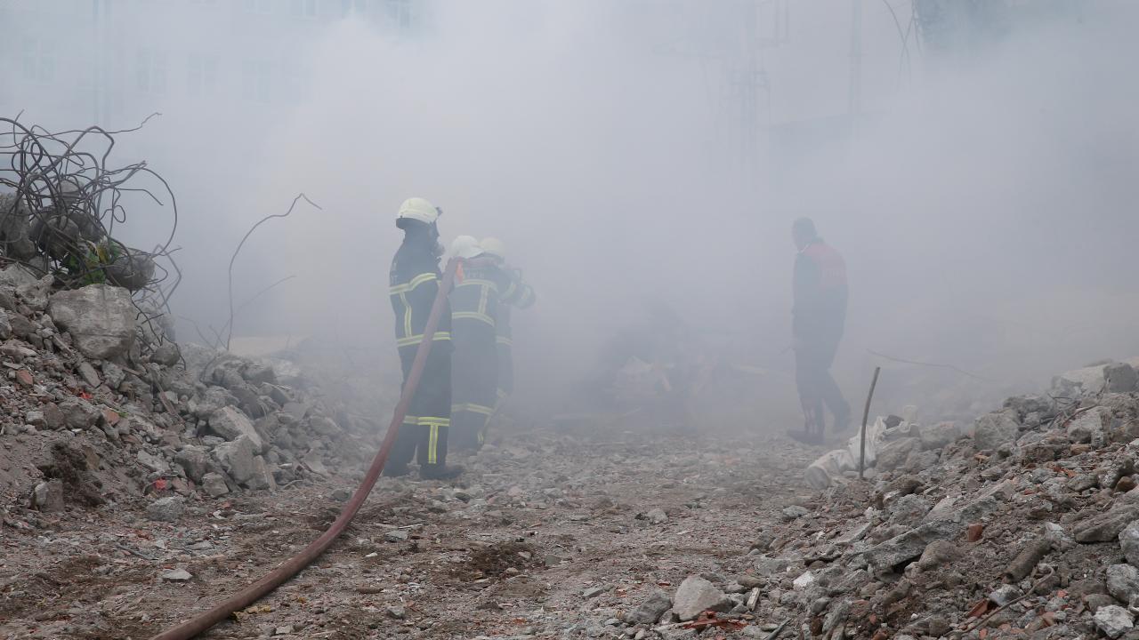 Kısa sürede enkazın bulunduğu alana ulaşan ekipler güvenlik önlemi aldı, elektrik ve doğalgaz akımını kesildi. İtfaiye ekipleri de binanın bir bölümünde çıkan yangını söndürdü.