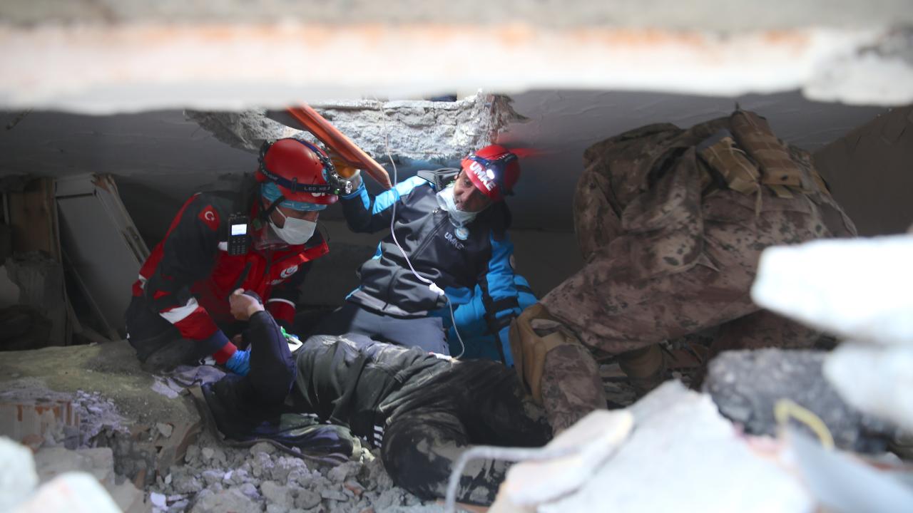 Ardından enkaz alanında teknik cihazlarla sismik-akustik ve görüntülü çalışma yapan ekipler, bina girişinde yerini tespit ettikleri bir kişiyi daha kurtardı.