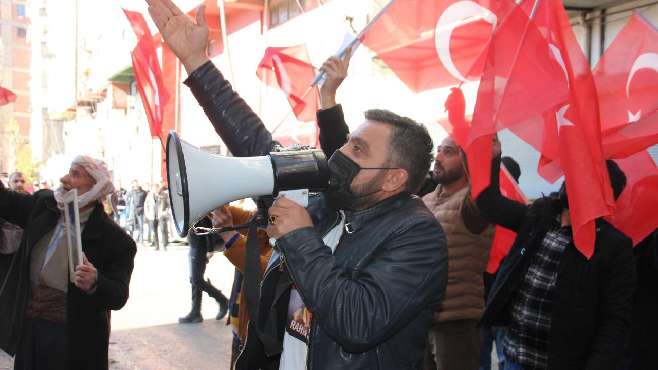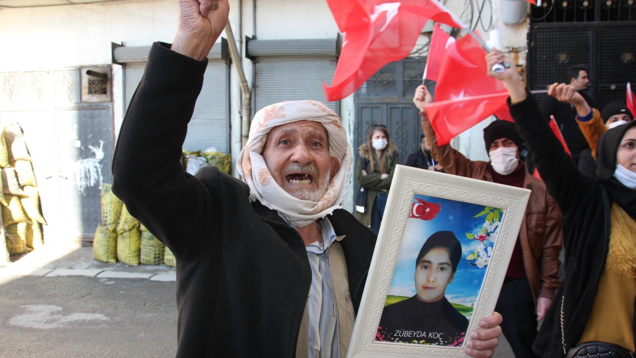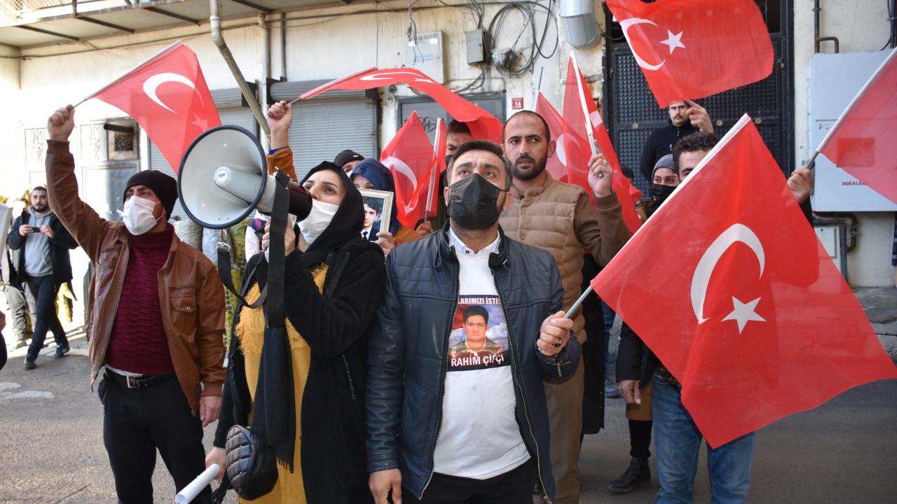 "Şehitler ölmez vatan bölünmez" ve HDP ile terör örgütü PKK aleyhine slogan atan aileler, daha sonra buradan ayrıldı.
