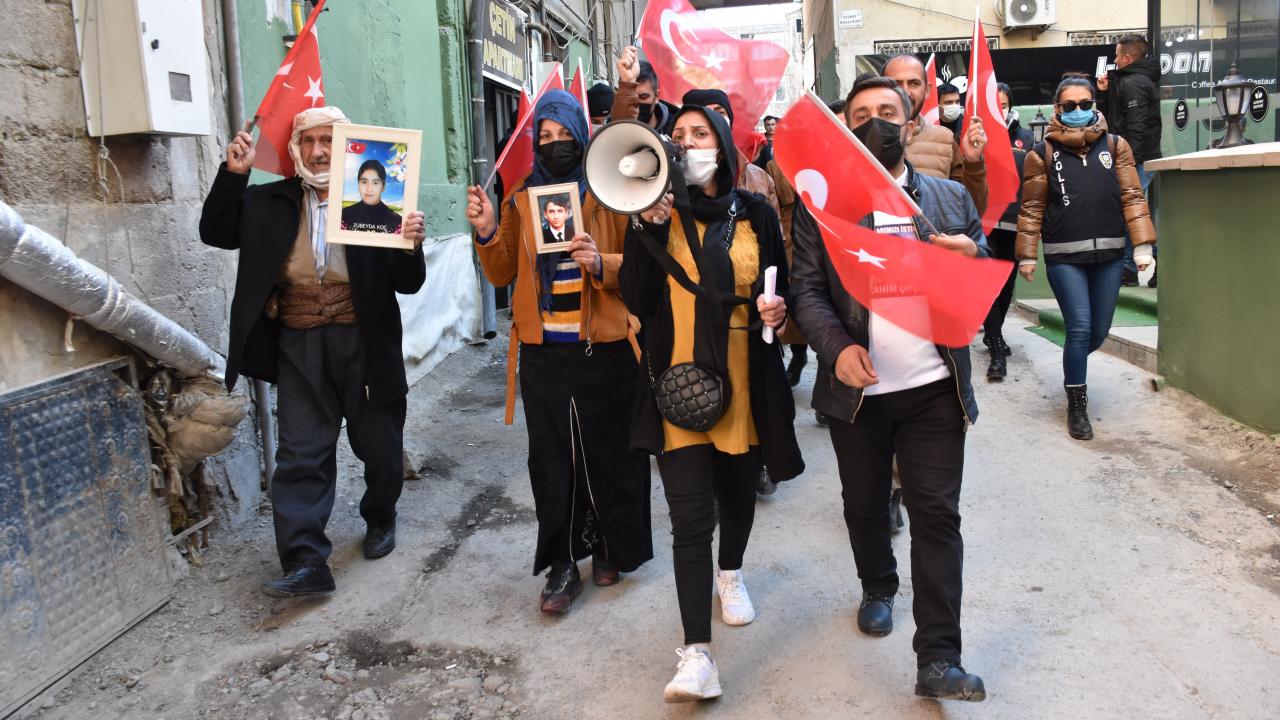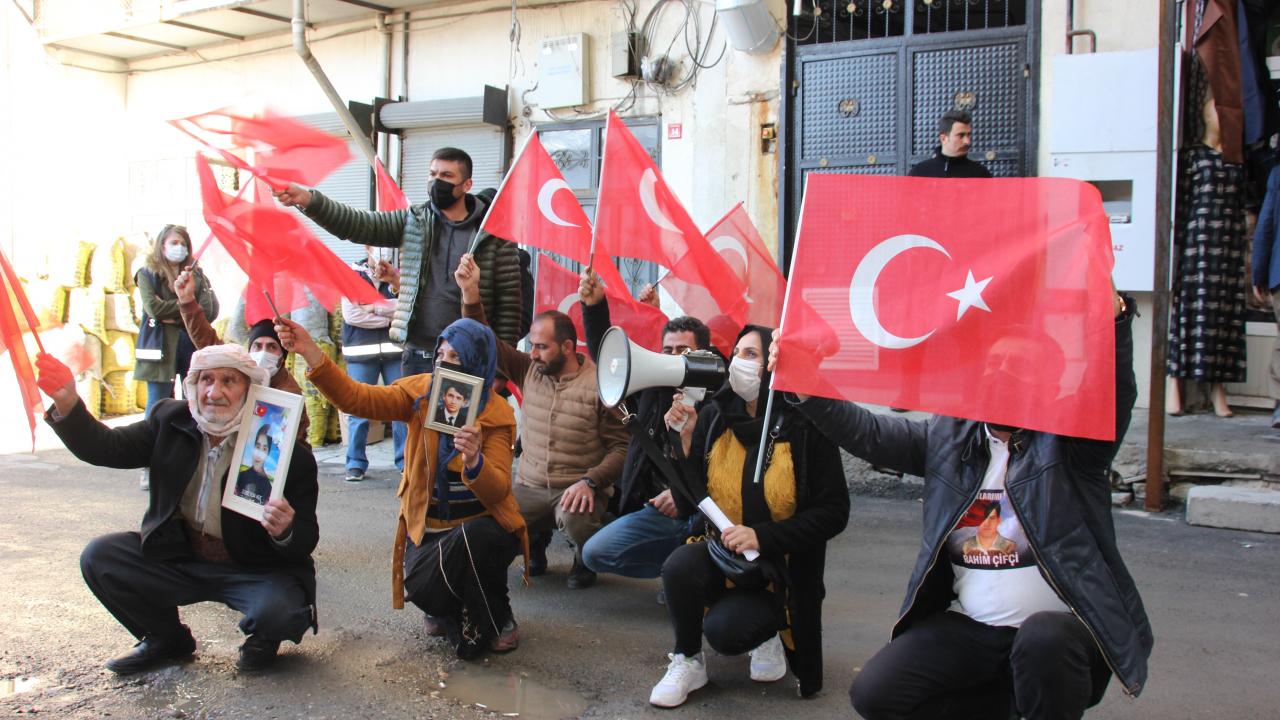 Eylemlerinin 22. haftasında da terör örgütü PKK ile HDP`ye tepki gösteren aileler, bir süre oturma eylemi yaparak seslerini çocuklarına duyurmaya çalıştı.