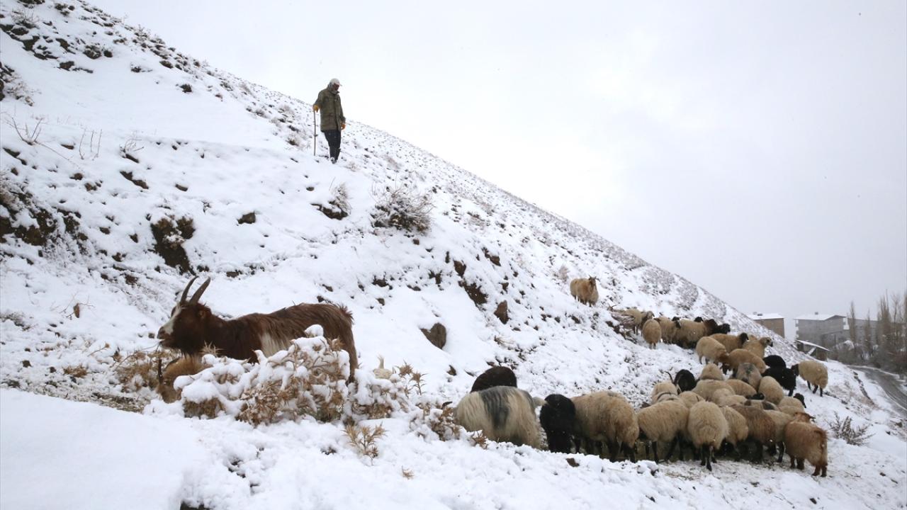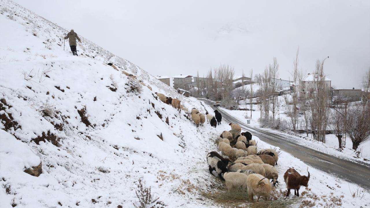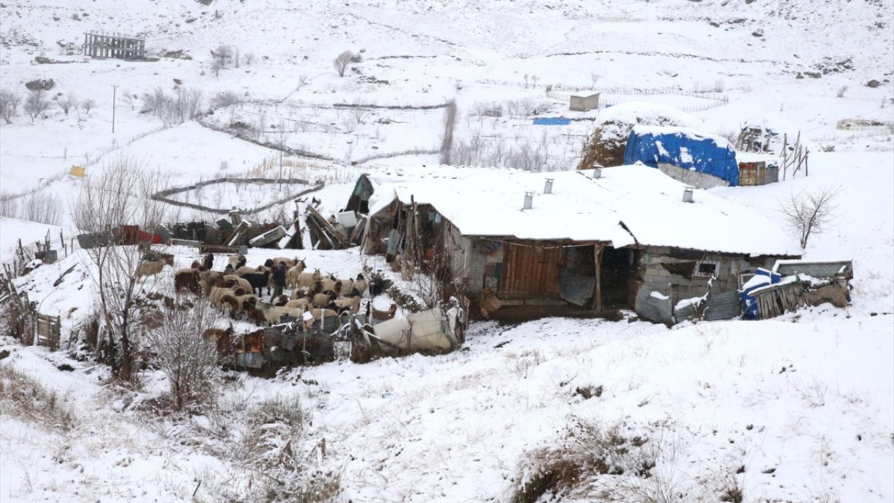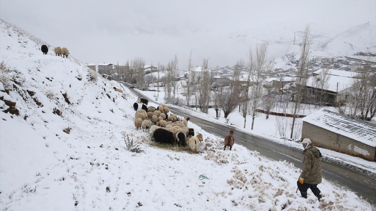 Hakkari'de besiciler hayvanlarını kar örtüsü üzerinde besliyor