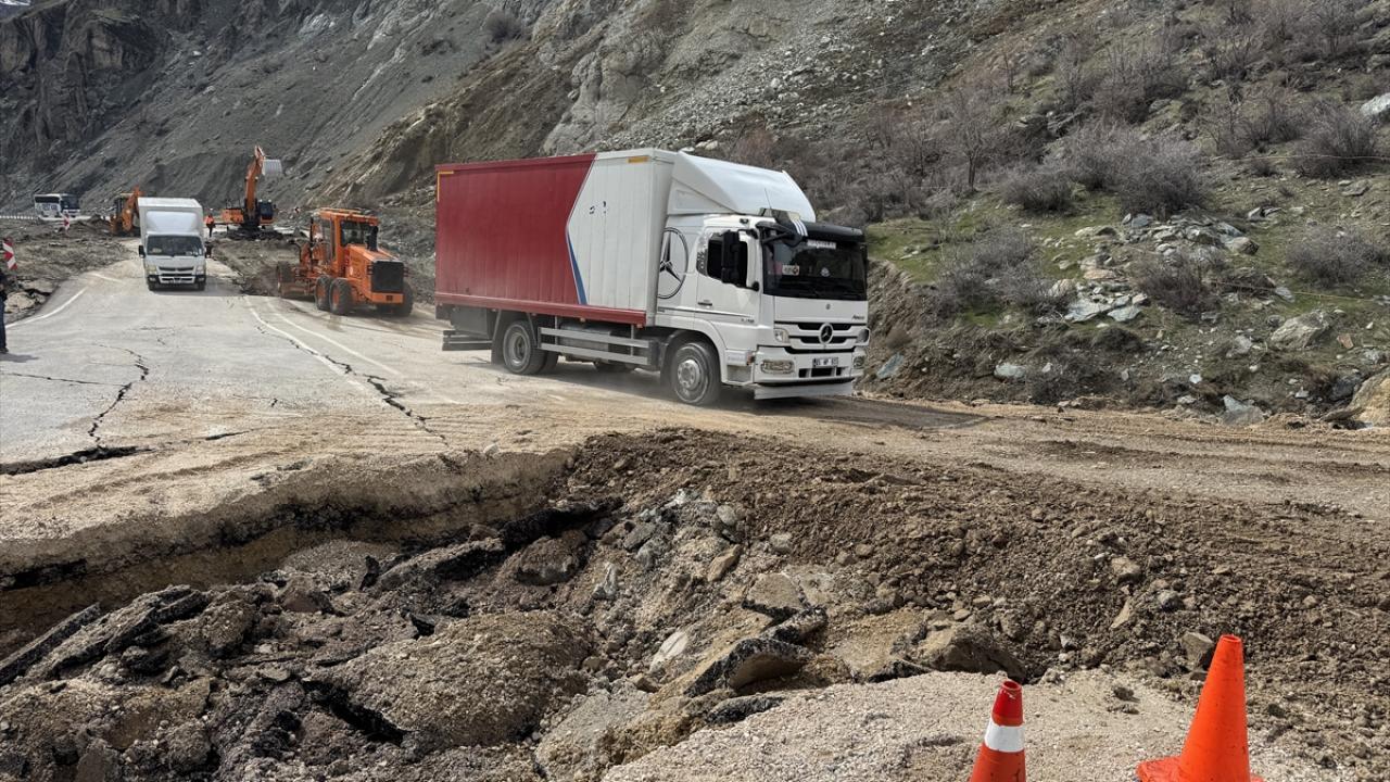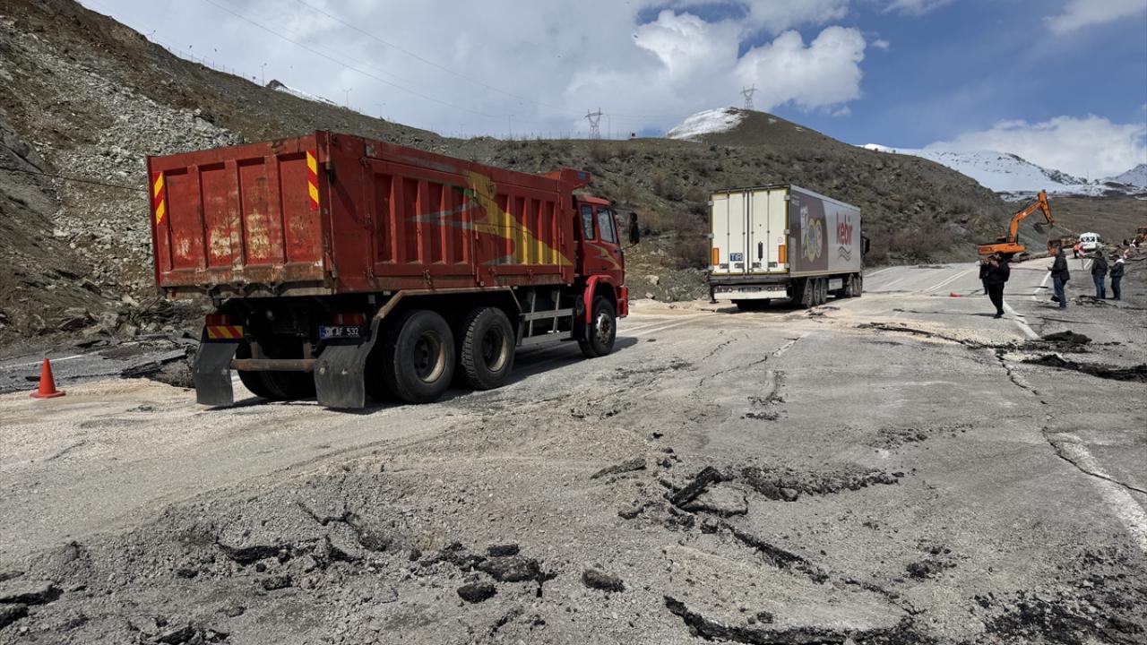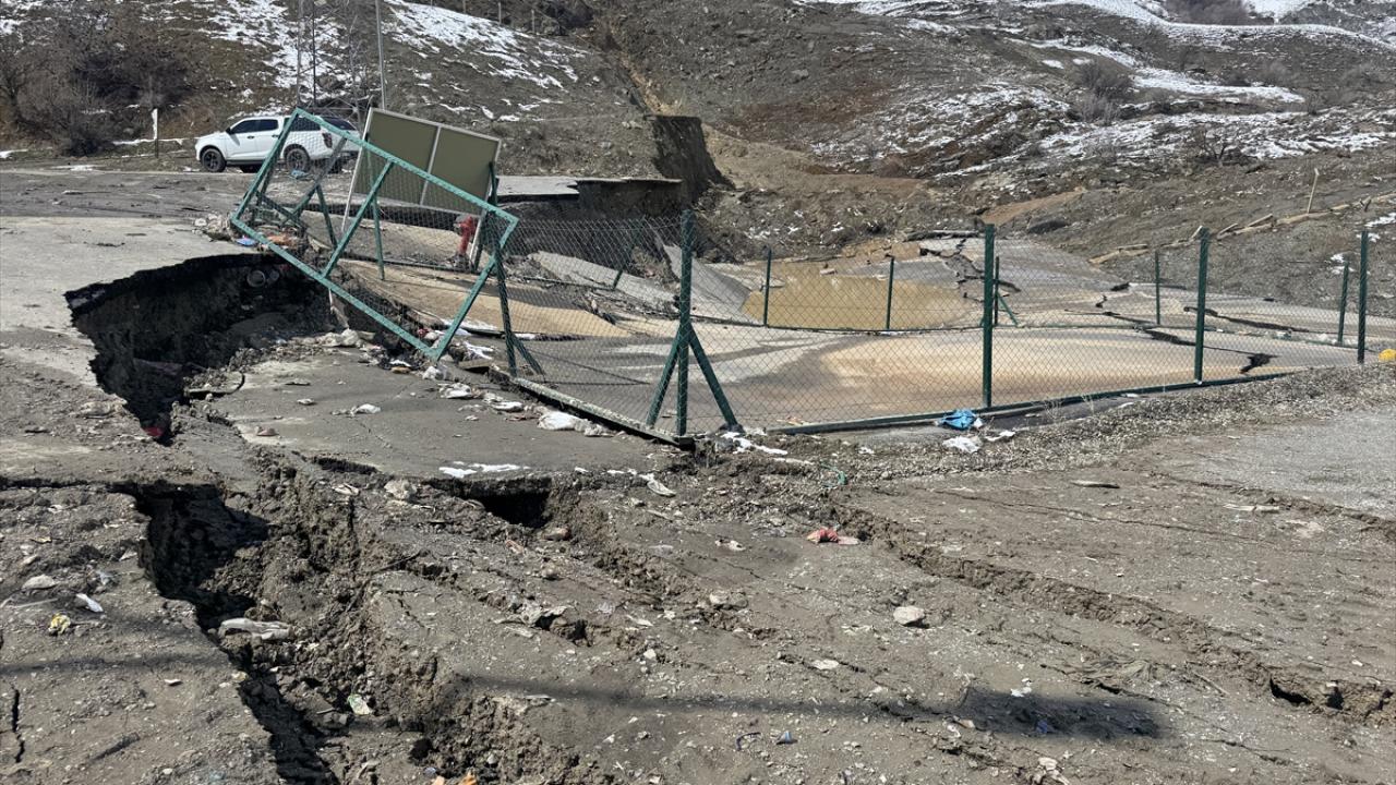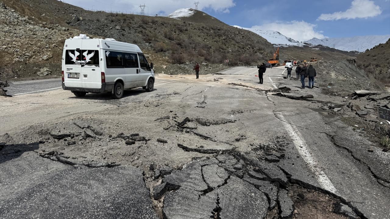 Heyelan sonrası Van-Hakkari kara yolunun Akçalı köyü yakınında çatlaklar ve çökme oluştu.