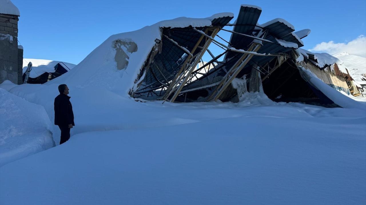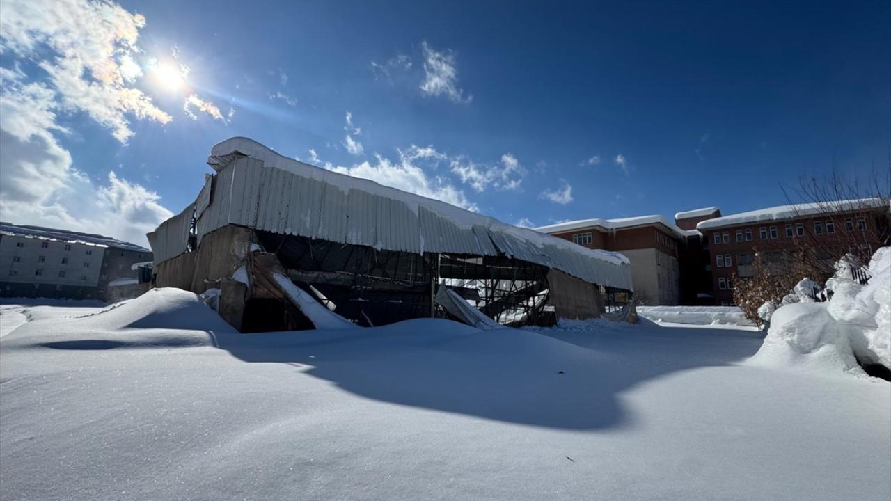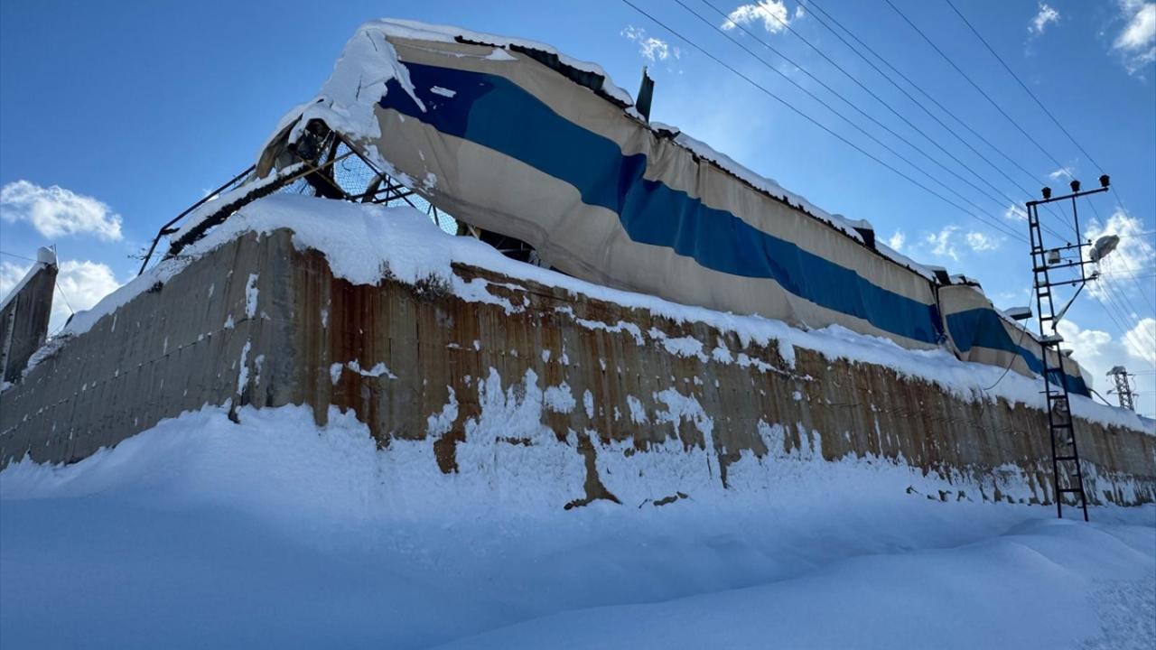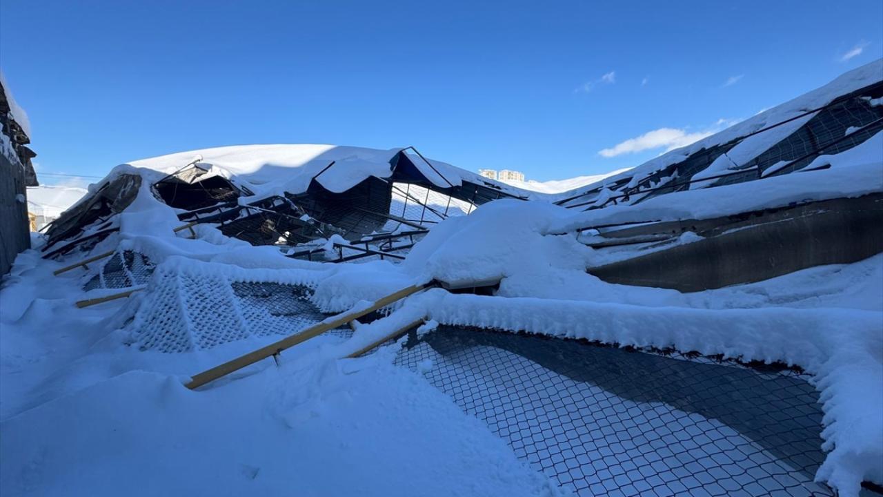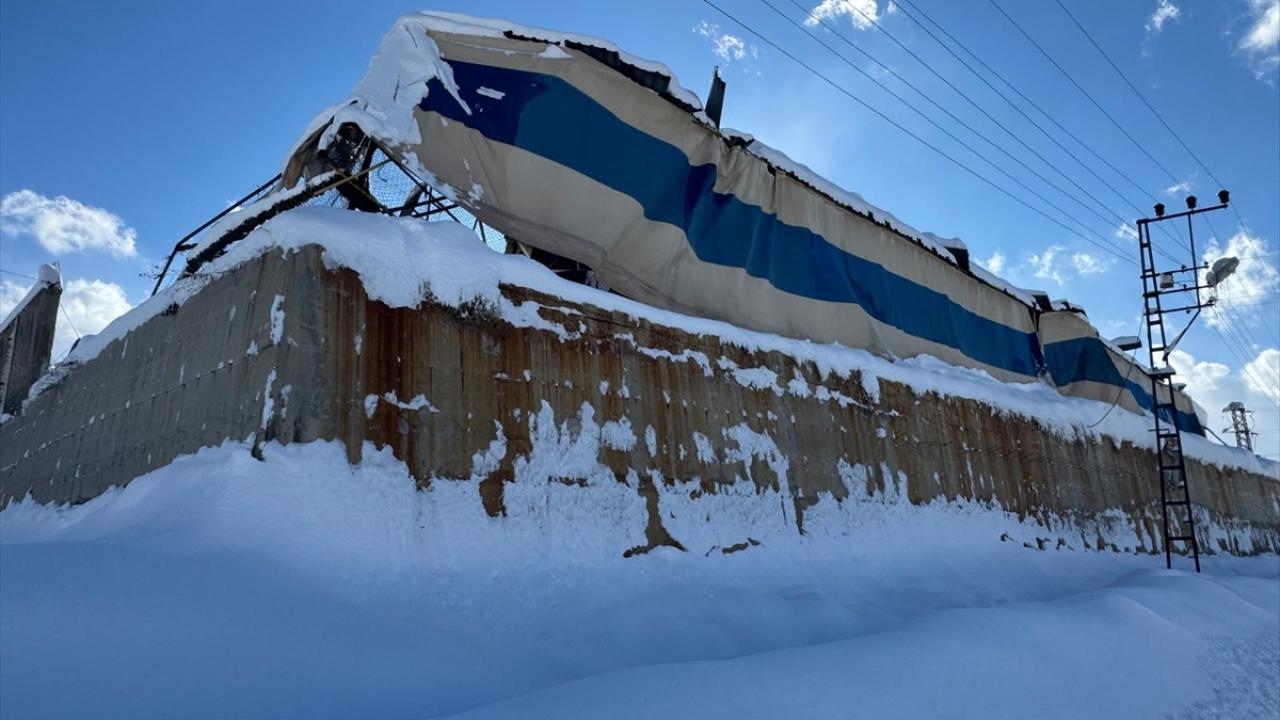 Yüksekova ilçesinde de yoğun kar yağışı nedeniyle farklı noktalardaki 8 halı sahanın çatısı çöktü.