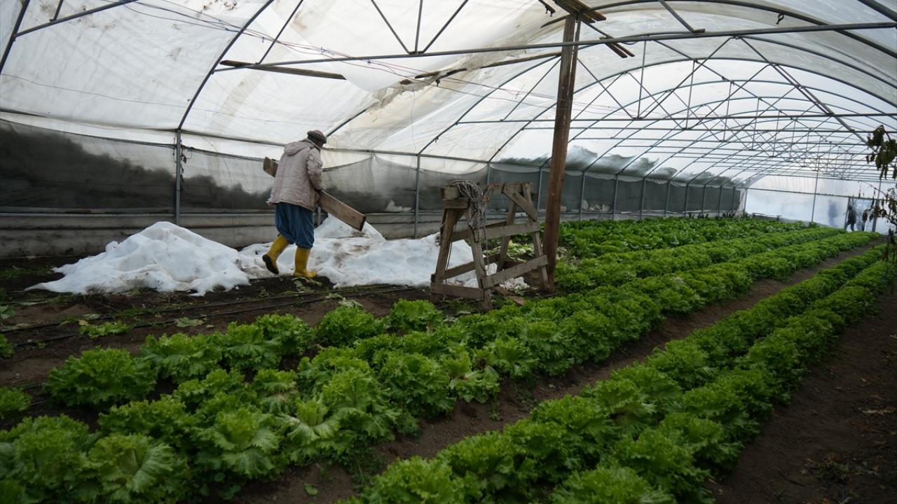 Üretici Bünyamin Üstündağ ise "Ailemle seralarda marul, roka, yeşil soğan ve turp yetiştiriyoruz. Yoğun kar yağışı sonrası seralarımız çöktü, ürünlerimiz kullanılamaz hale geldi. Mağdur olduk." dedi.