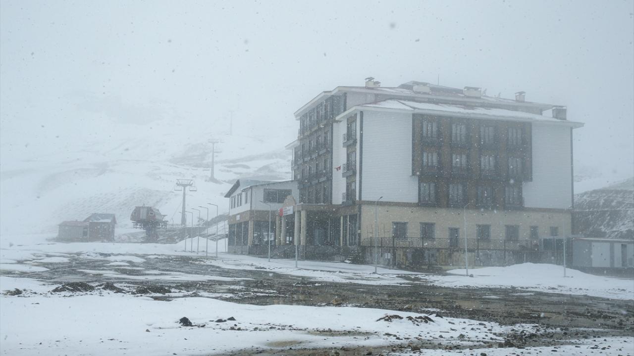 Yağış nedeniyle Merga Bütan Kayak Merkezi, dağ ve tepelerin zirveleri beyaza büründü.