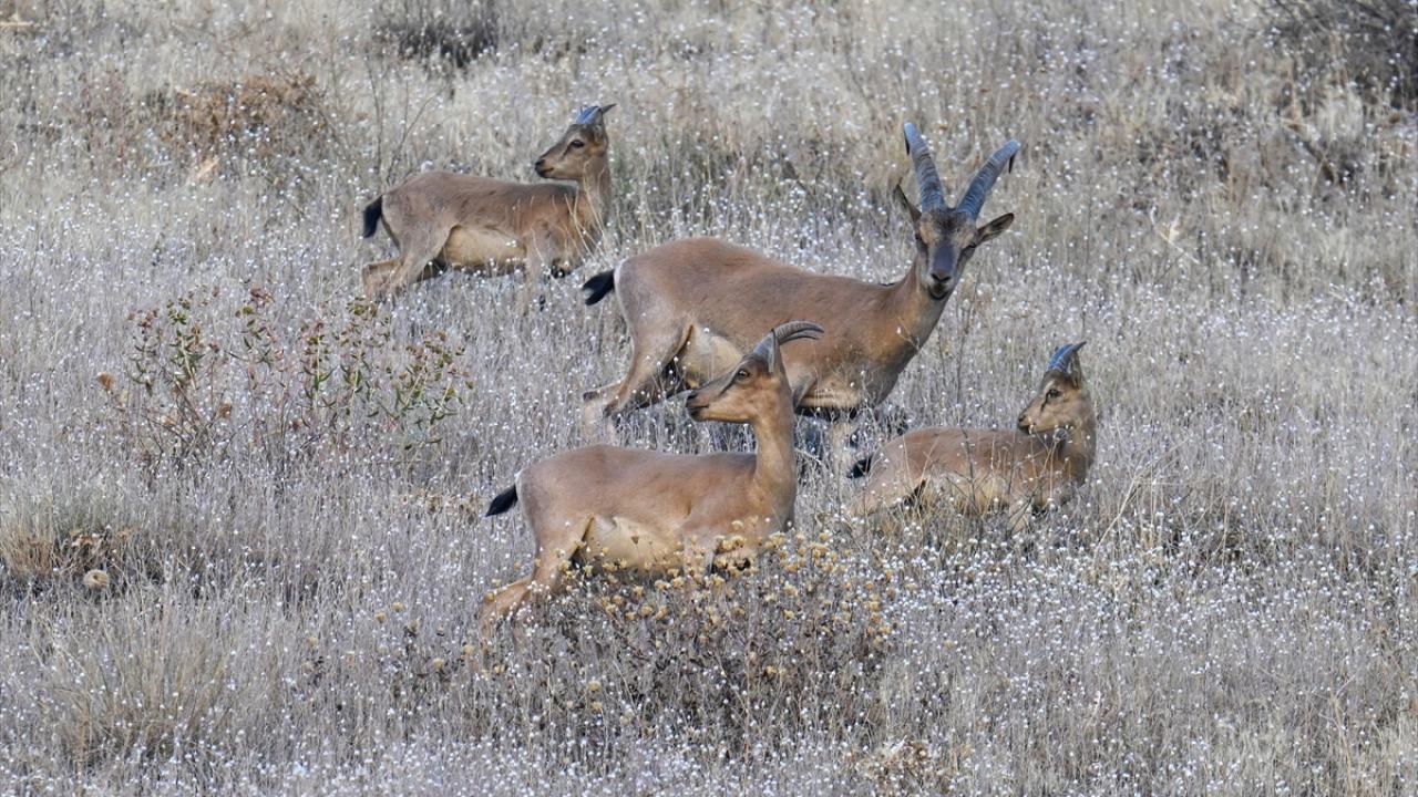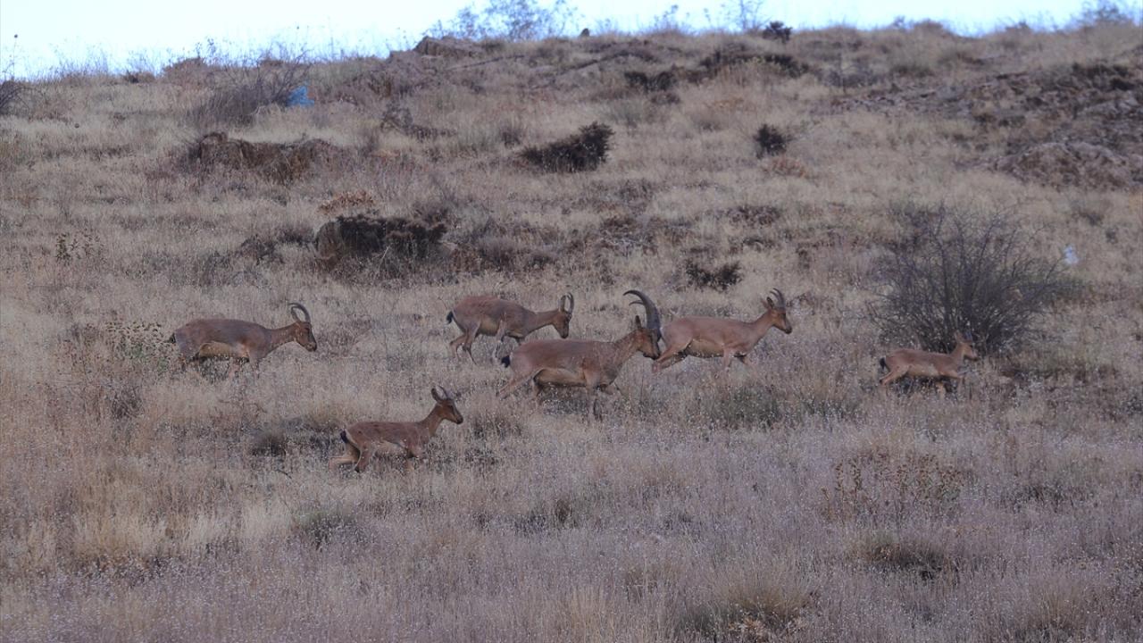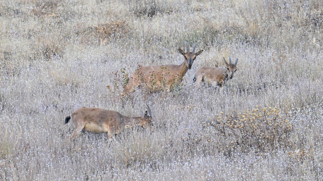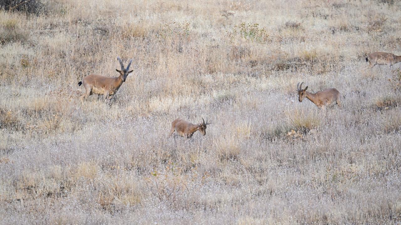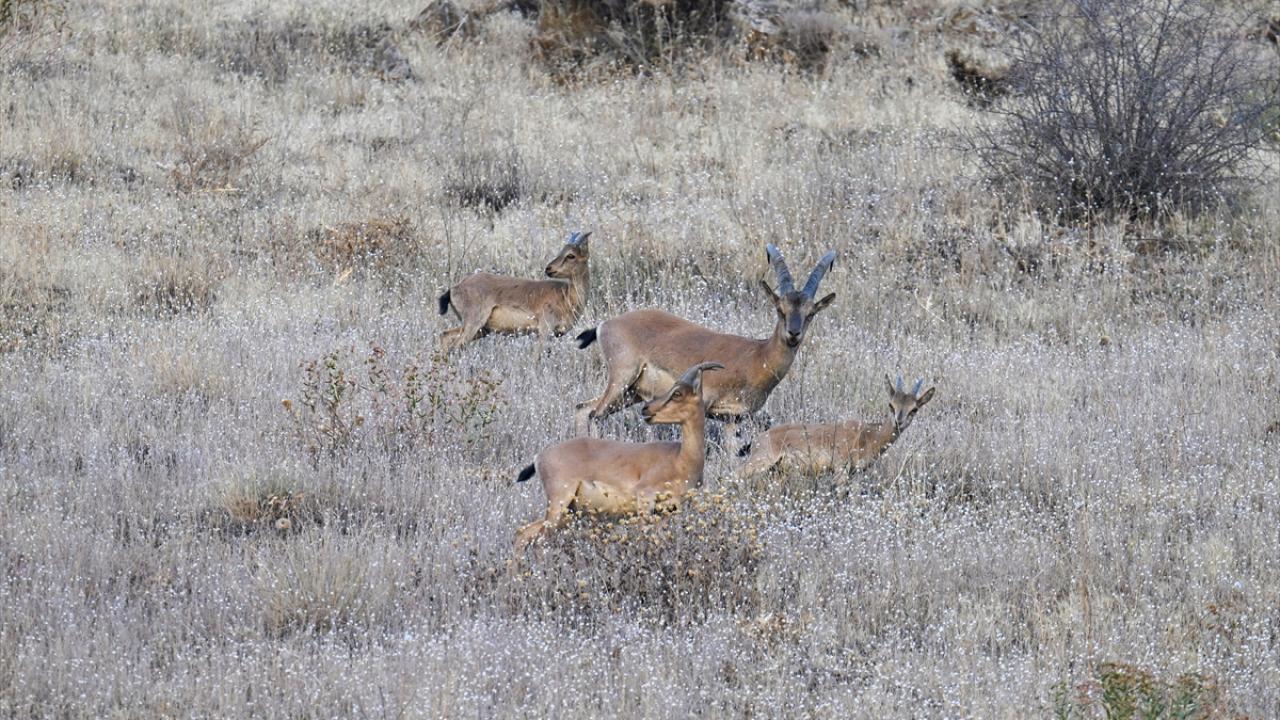 Hakkari`nin birçok noktasında sürüler halinde dolaşan yaban keçileri, kentin girişindeki Sere Solan mevkisindeki yamaçta görüldü.