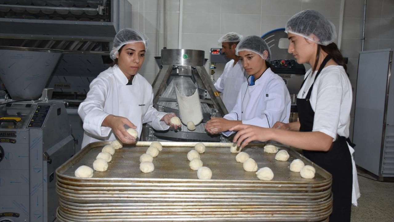 Hakkari'de Mehmet Akif Ersoy Mesleki ve Teknik Anadolu Lisesi'nde kurulan "fırın atölyesi"nde öğrenciler, usta öğretici ve alan şefleriyle günlük 6 bin ekmek üreterek pansiyonlu okulların ihtiyacını karşılıyor.