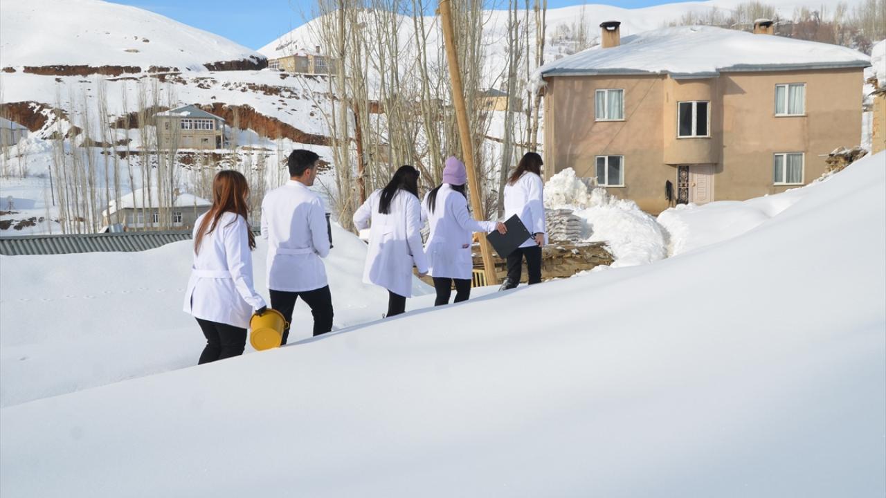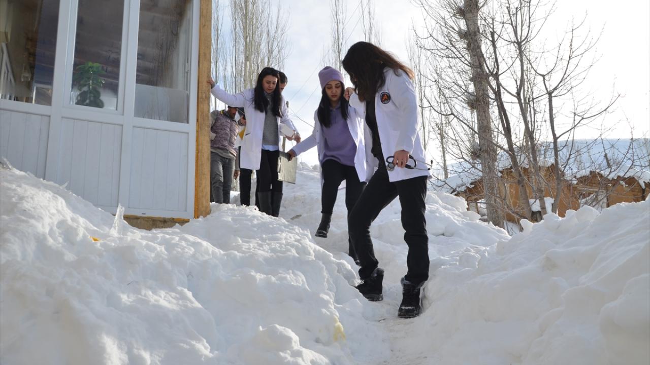 Kış boyunca karla kaplı olan ilçede görev yapan sağlık çalışanları, olumsuz hava koşullarına rağmen kırsal bölgelerde sağlık hizmetlerinin aksamaması için çaba gösteriyor.