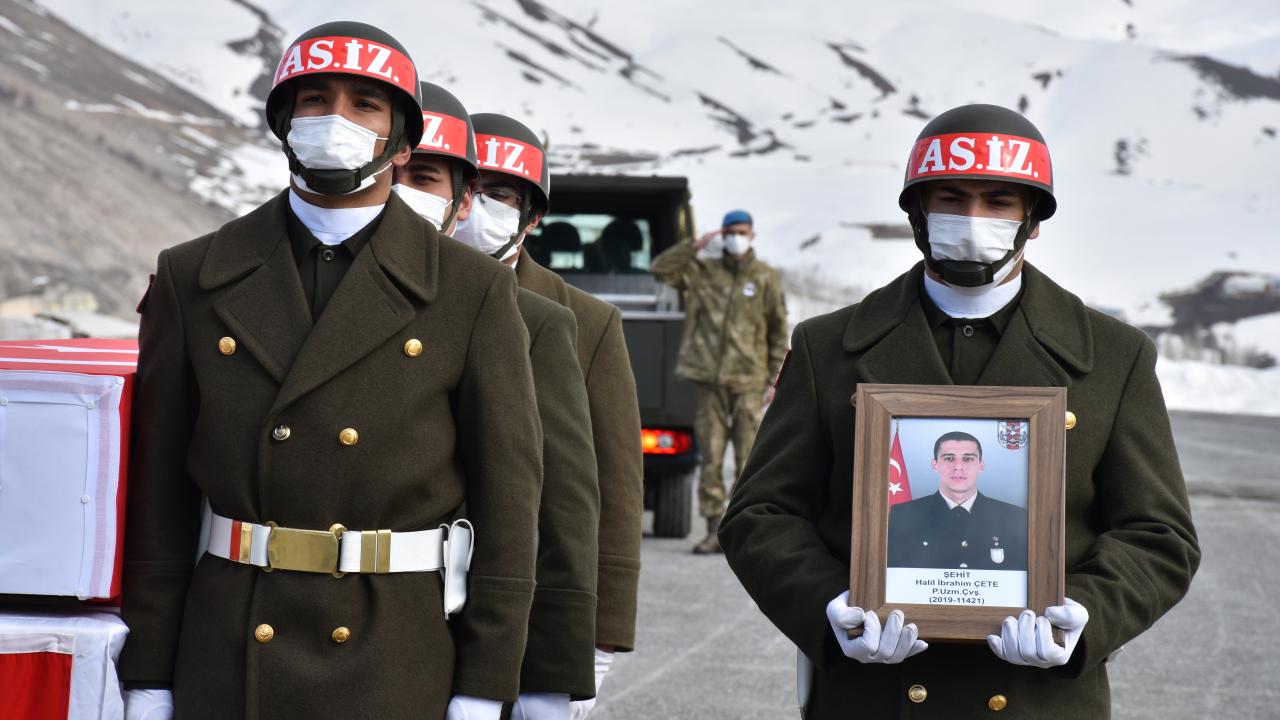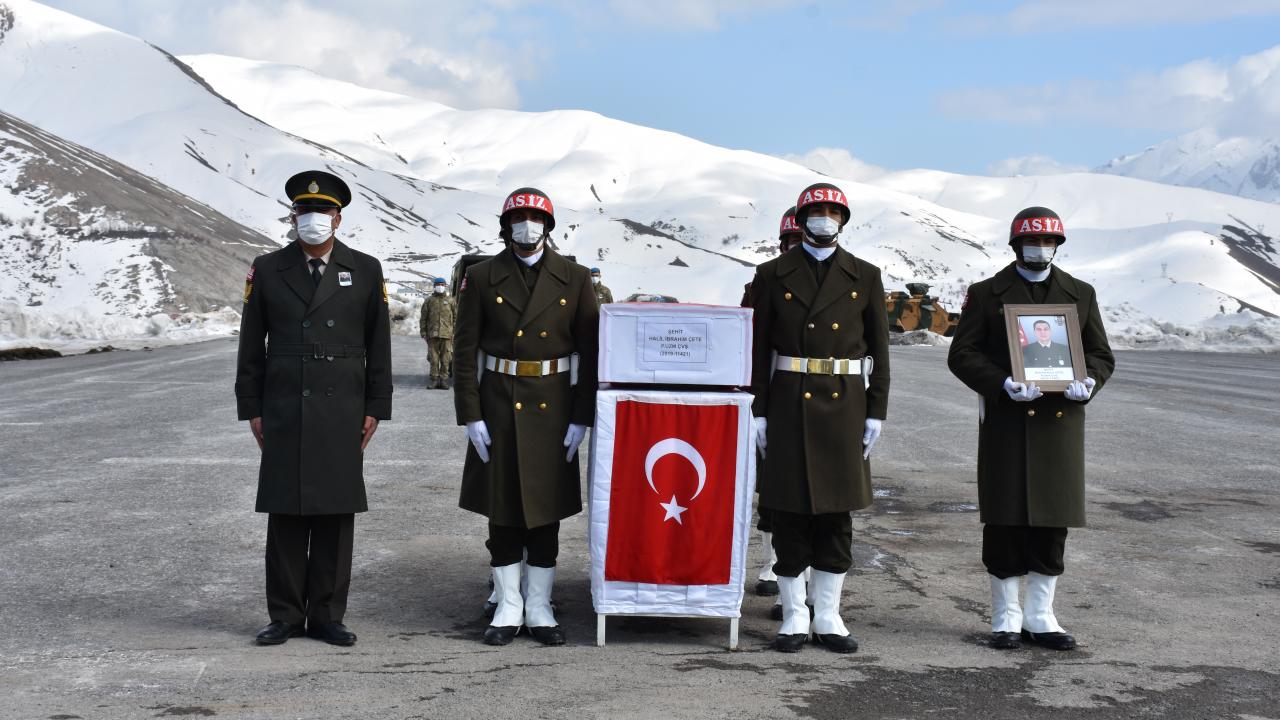 Pençe Yıldırım Harekatı bölgesindeki bir üs bölgesinde silah kazasında şehit olan Piyade Uzman Çavuş Halil İbrahim Çete için Hakkari'de tören düzenlendi.