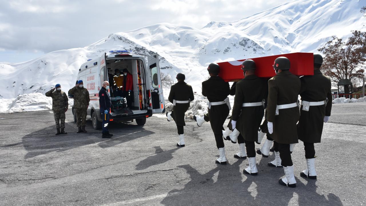 Silah arkadaşları tarafından omuzda taşınarak ambulansa konulan şehidin naaşı, Yüksekova Selahaddin Eyyubi Havalimanı`ndan memleketi Hatay`a uğurlanacak.
