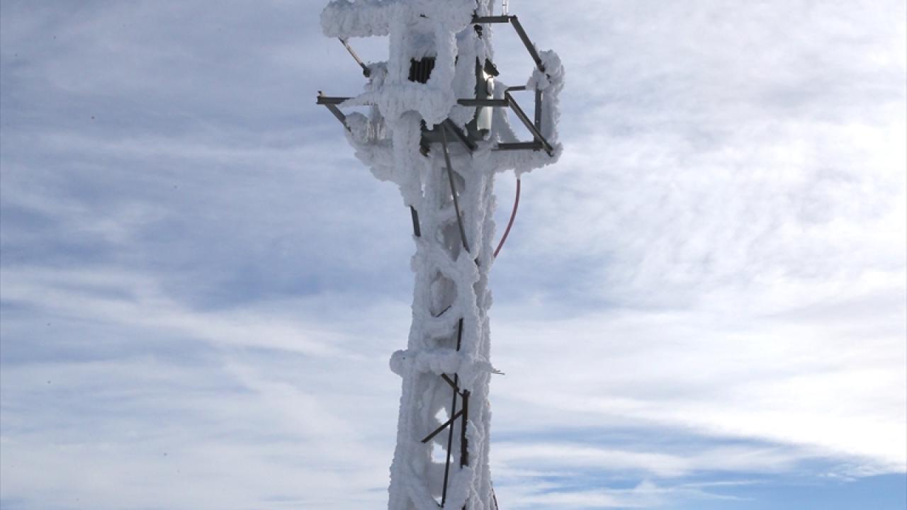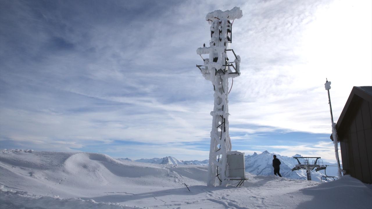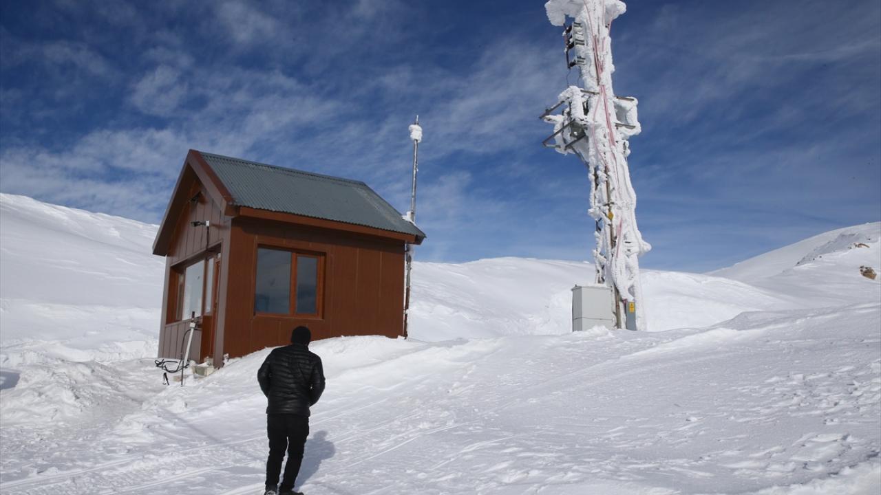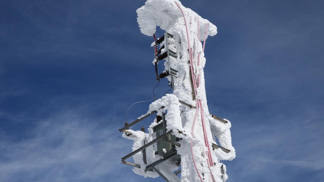 Merga Bütan Kayak Merkezi`ndeki 3 bin rakıma inşa edilen kafenin büyük bölümü kar altında kaldı, aynı bölgedeki elektrik direği kar ve buzla kaplandı.