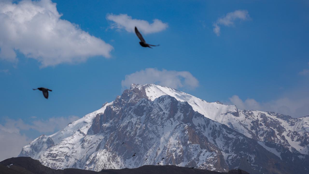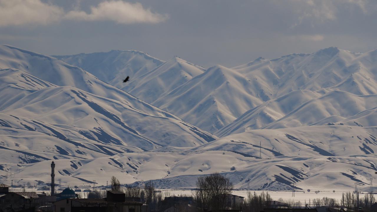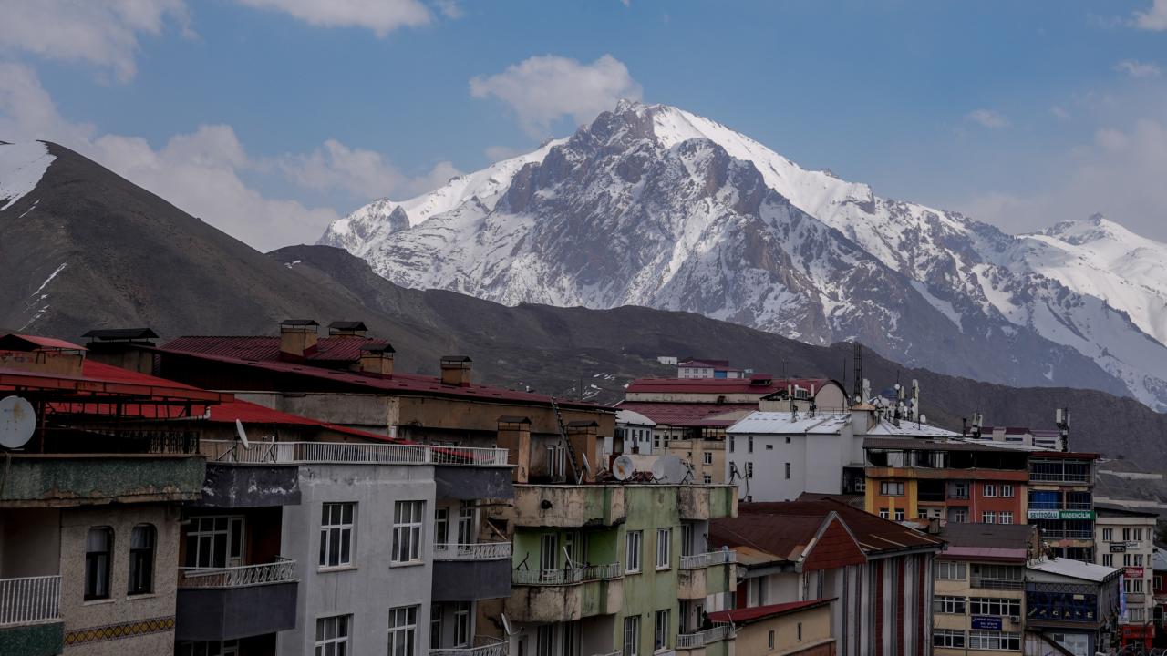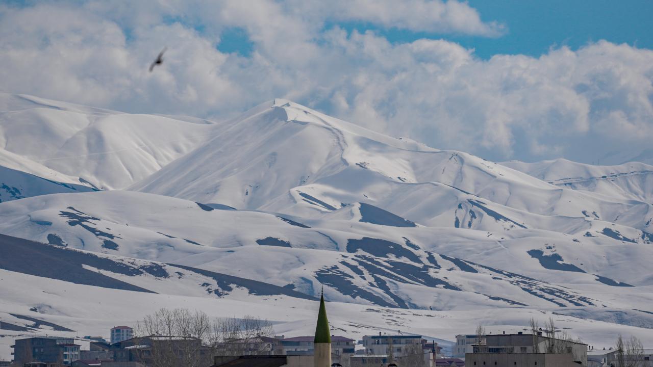 Hakkari'de yüksek kesimlerde etkili olan kar yağışı dağların zirvesini beyaza bürüdü.