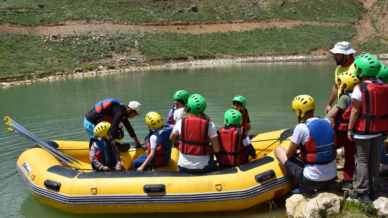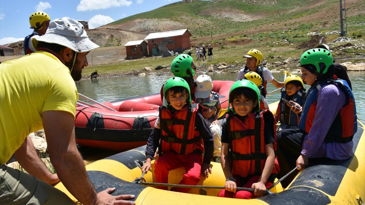 Alandaki gölette rafting botuna bindirilen çocuklar, ardından "Kanka" polis maskotuyla fotoğraf çektirdi, müzik eşliğinde oyunlar oynadı.