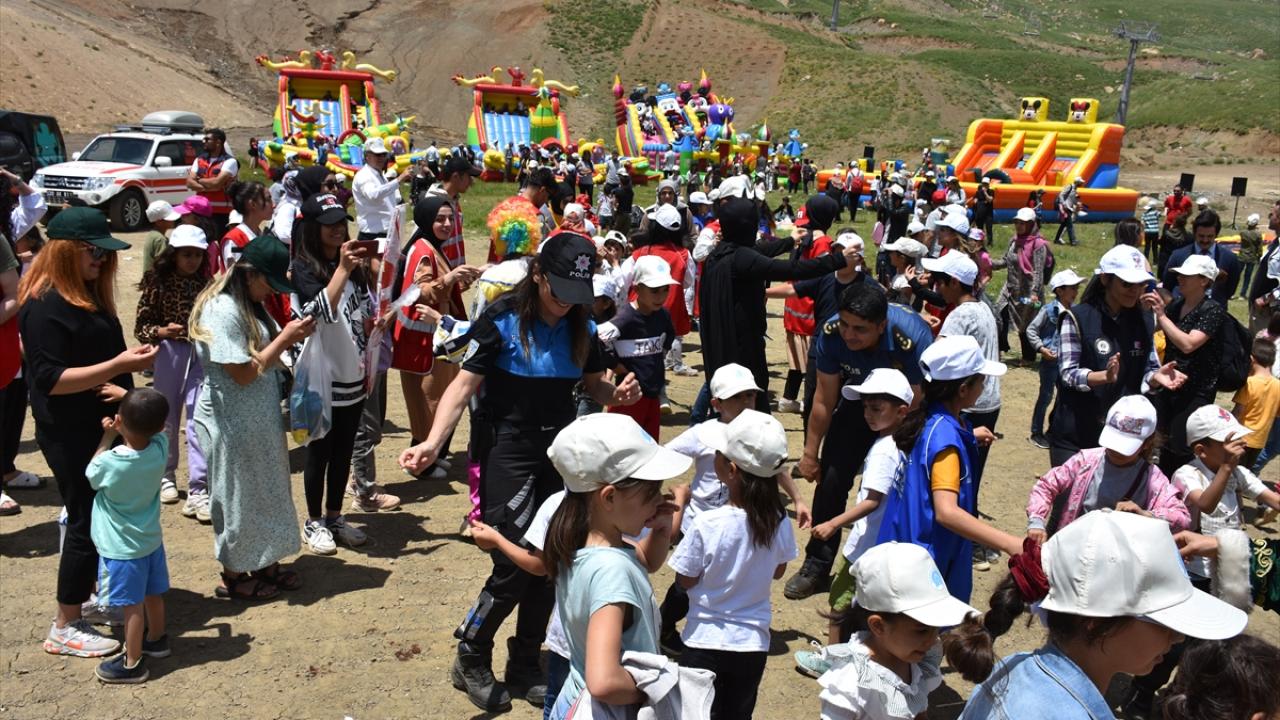 Hakkari'de çocuklar, Belediye ve Emniyet Müdürlüğünce düzenlenen karne şenliği etkinliğinde uçurtma uçurdu, rafting botuna bindi, şişme oyun paklarında eğlendi.