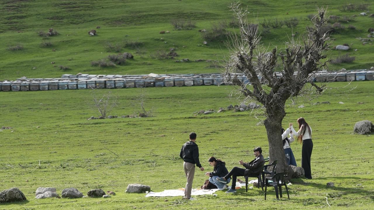 Doğanın canlanmasıyla baharın güzelliklerinin görüldüğü ilçede vatandaşlar, yeşeren alanlarda piknik yapıp sıcak havanın keyfini çıkarıyor.