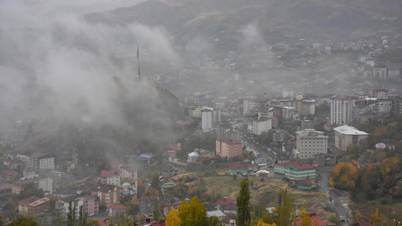 Hakkari'de etkili olan sağanağın ardından yüksek kesimlerde sis bulutları oluştu.