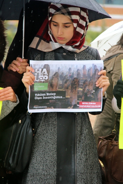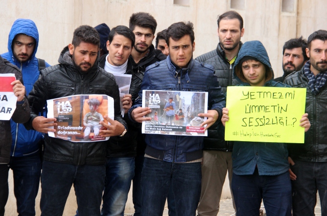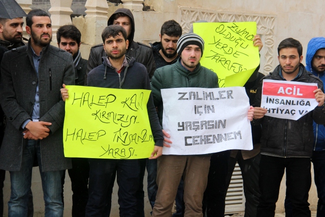Gaziantep'te Halep'teki sivillere yönelik saldırılara tepki gösterildi, hayatını kaybedenler için gıyabi cenaze namazı kılındı.