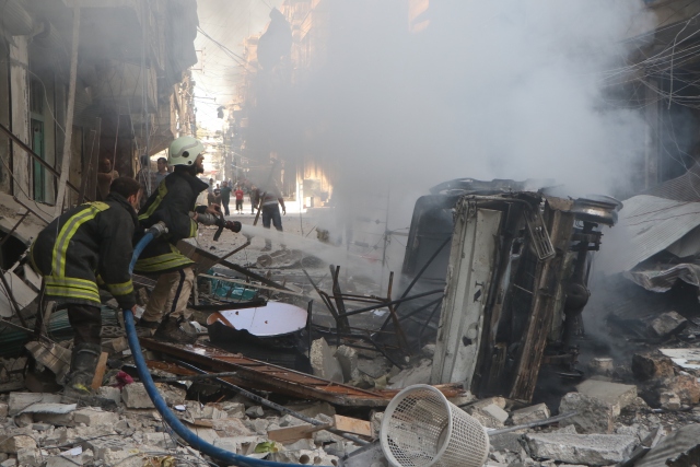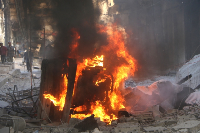 Suriye'nin kuzeyindeki Halep kentinde muhaliflerin denetimindeki Meşhed semtine Rus jetinin düzenlediği saldırıda, çok sayıda ölü ve yaralıların olduğu bildirildi. Saldırıya uğrayan bölgedeki binada yangın çıktı.