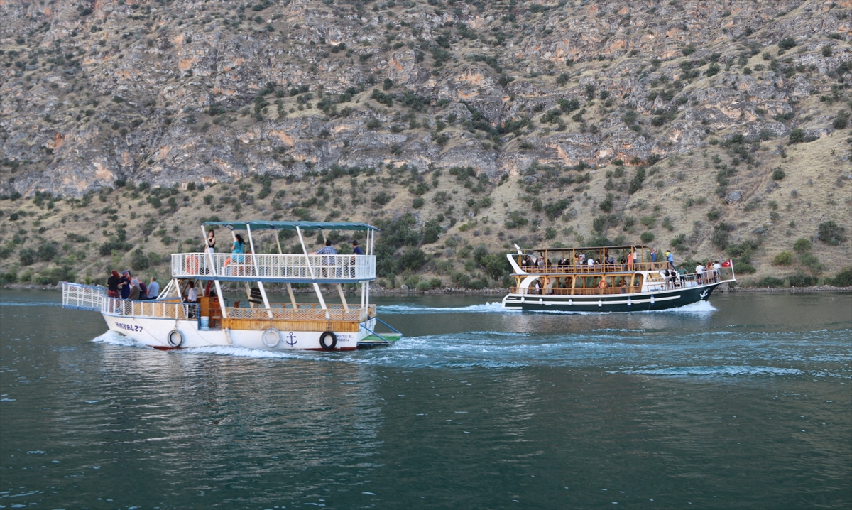 Tarihi taş evleri ve doğal güzellikleriyle Güneydoğu`nun "saklı cenneti" olarak nitelendirilen ilçede, turistler, özellikle bir bölümü sular altında kalan "batık kenti" tekne turuyla geziyor.