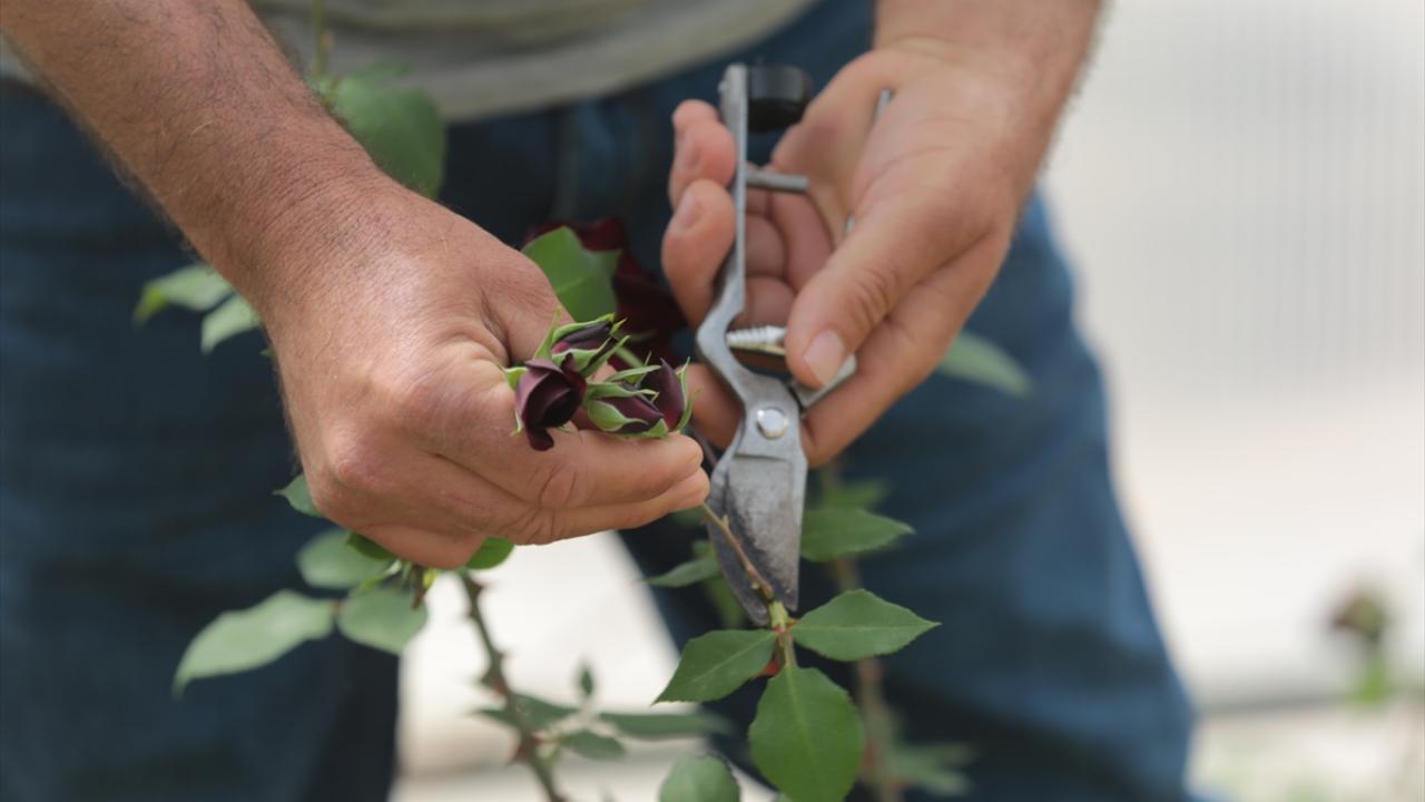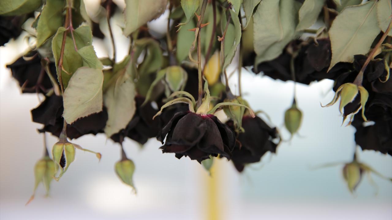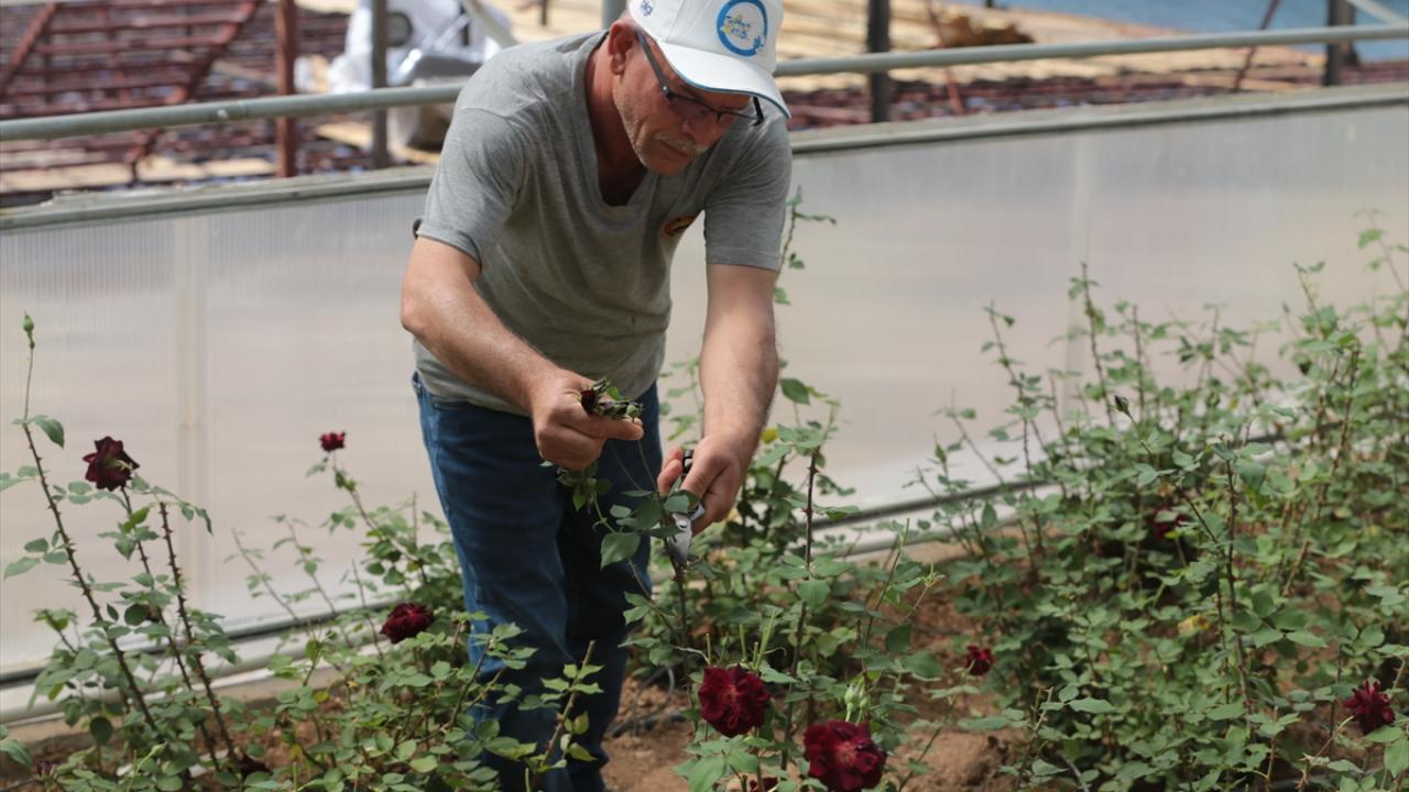 Eşsiz simsiyah rengi ve kokusuyla ilgi gören karagül, seralardaki görevliler tarafından çeşitli alanlarda kullanılması amacıyla dallarından kesilerek hasat edilmeye başlandı.