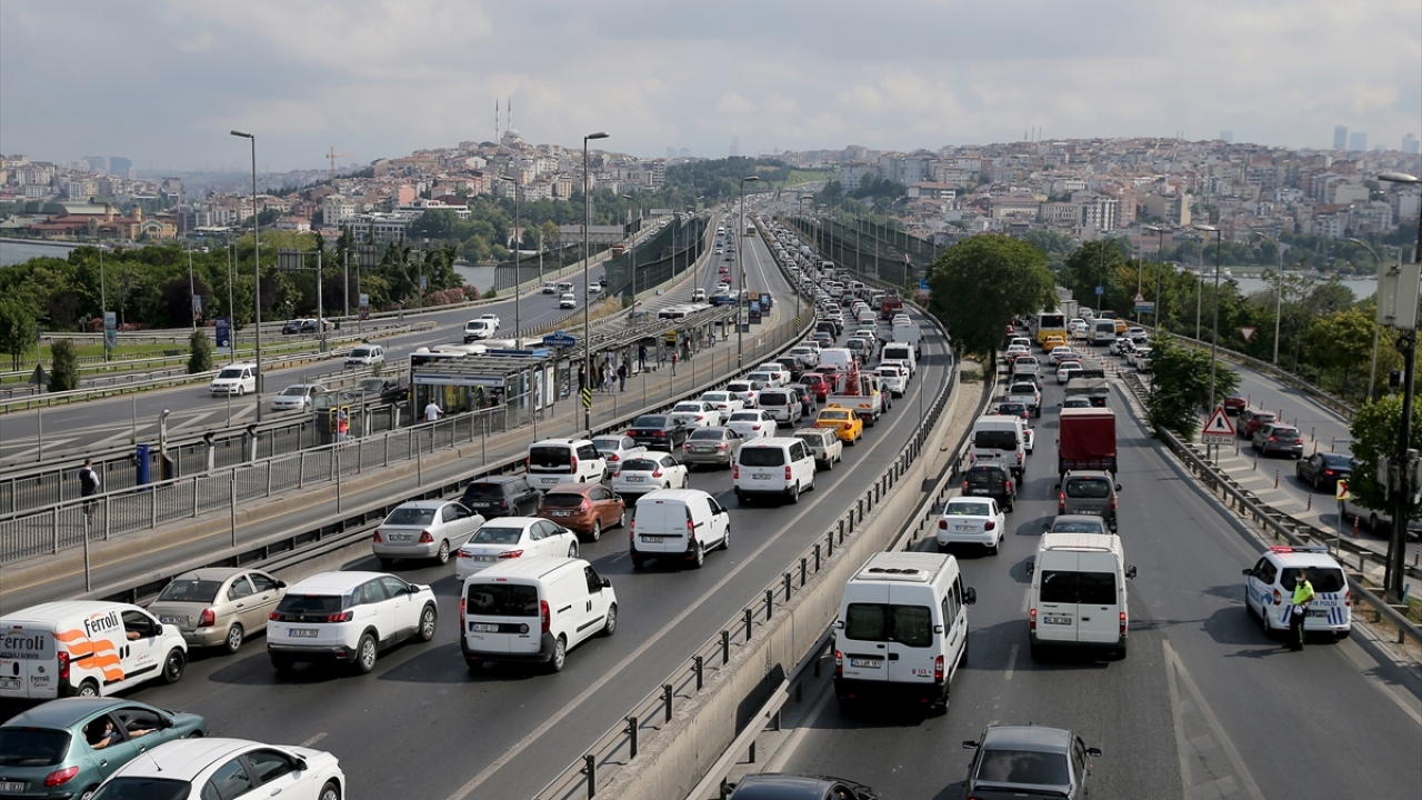 Çalışma nedeniyle D-100 Karayolunda, Cevizlibağ`dan Haliç Köprüsü`ne kadar sabahın erken saatlerinden itibaren uzun araç kuyrukları oluştu.
