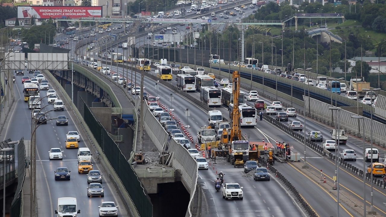 Çalışma nedeniyle D-100 Karayolunda, Cevizlibağ`dan Haliç Köprüsü`ne kadar sabahın erken saatlerinden itibaren uzun araç kuyrukları oluştu.