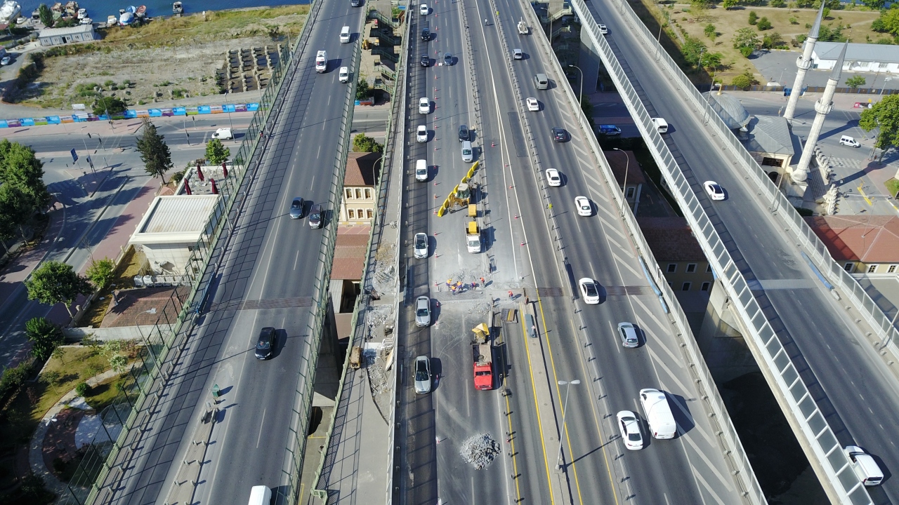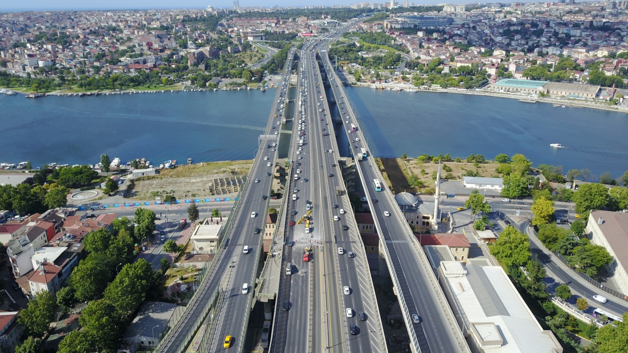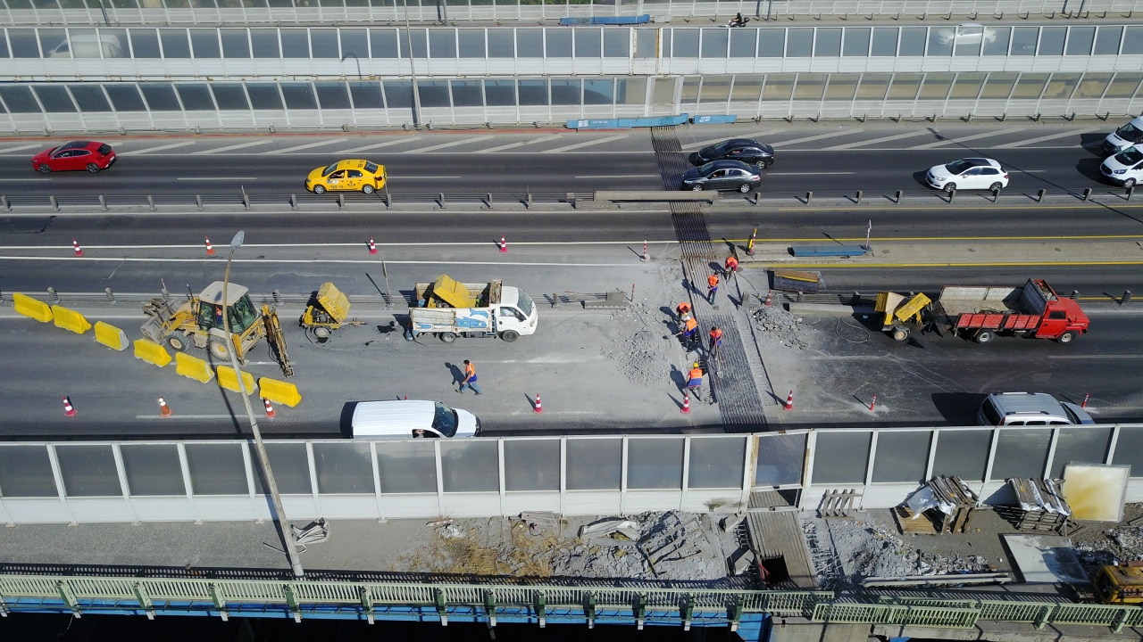 Haliç Köprüsü'nde İstanbul Büyükşehir Belediyesi tarafından yapılan ve bir ay sürecek olan bakım ve onarım çalışması başladı. Köprüde trafik yoğunluğuna neden olan çalışmalar havadan görüntülendi.