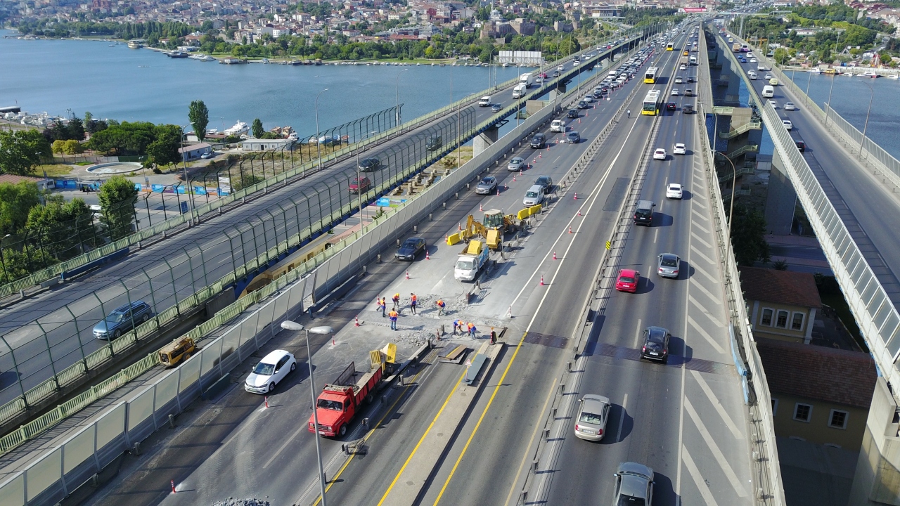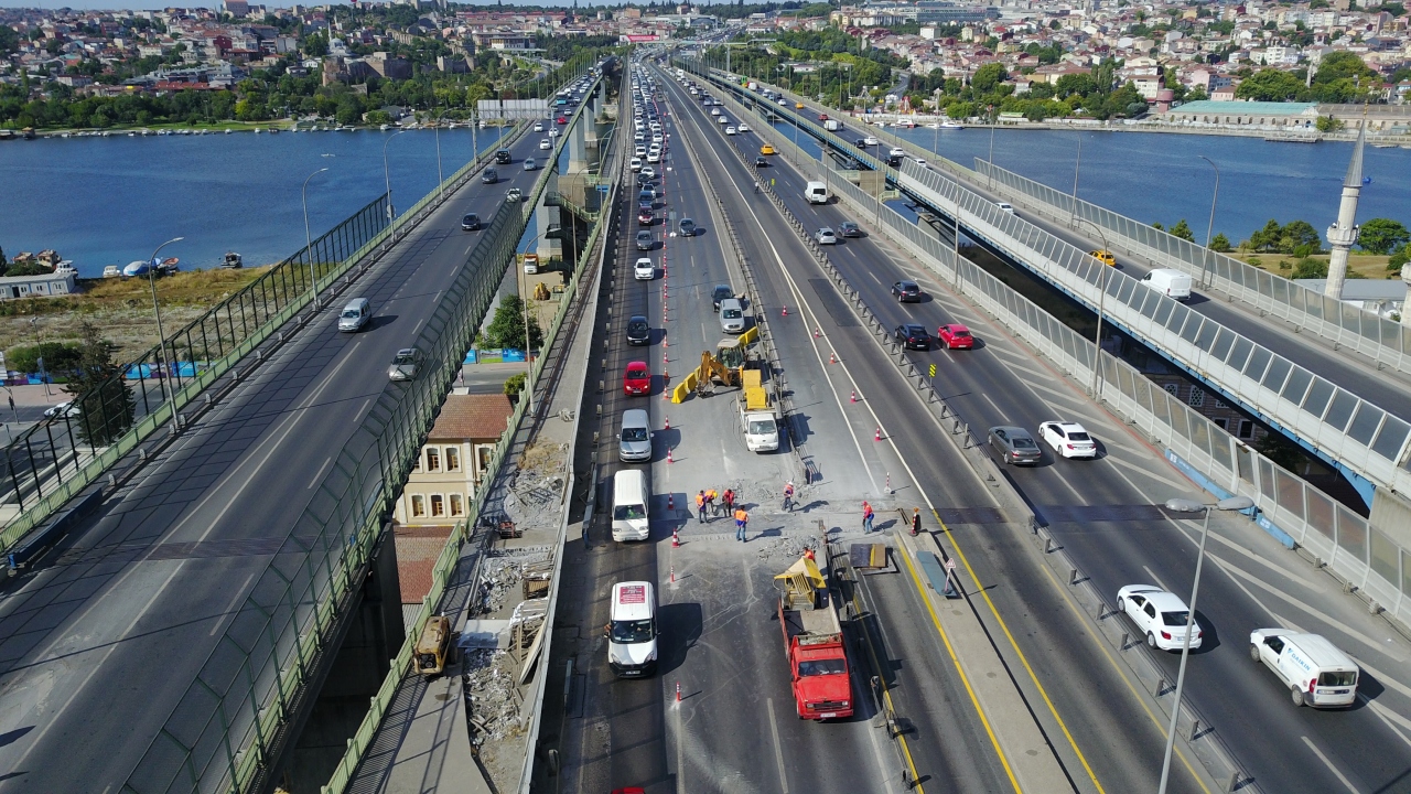 Haliç Köprüsü`nün kara yoluyla bağlantısını sağlayan derzlerin aşınması üzerine yapılan çalışma kapsamında, bazı şeritler kademeli olarak kapatıldı.