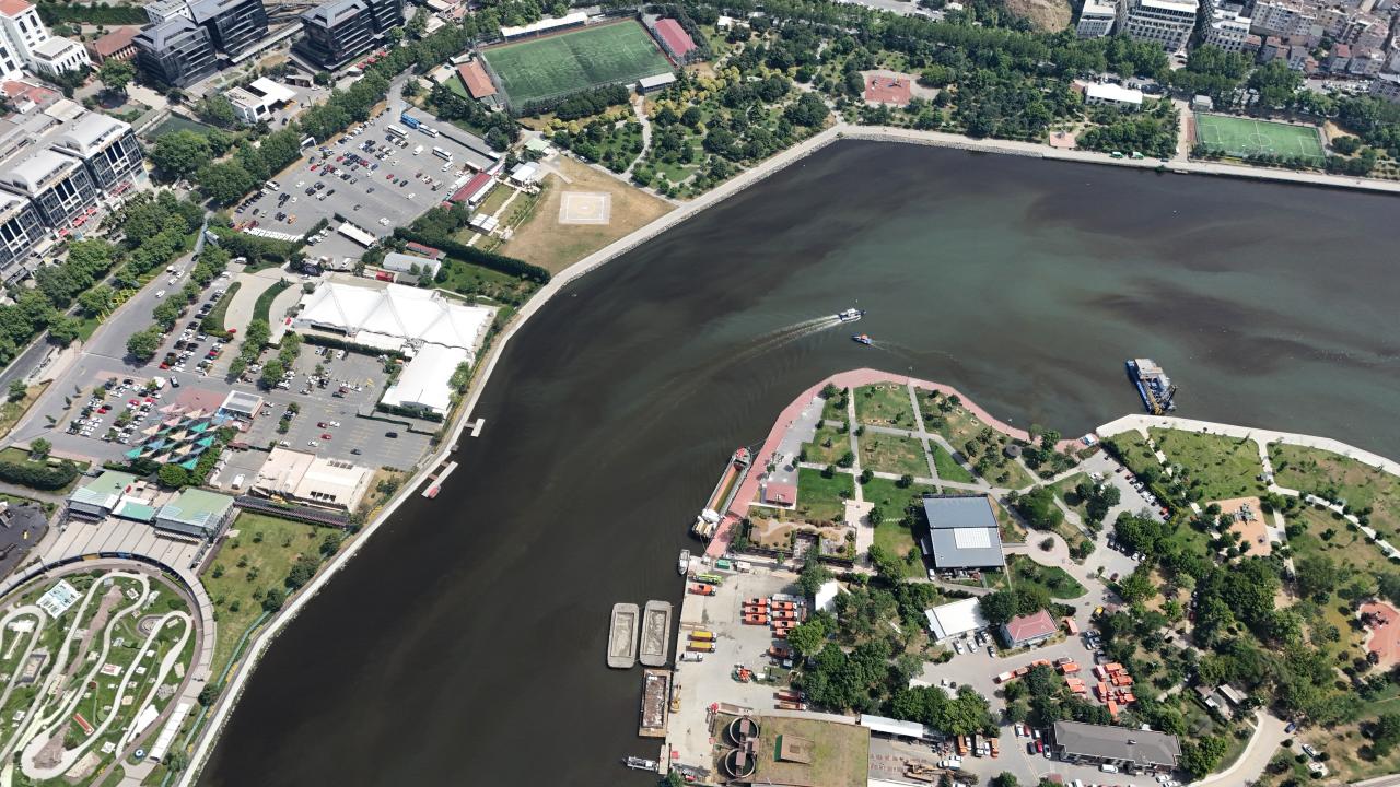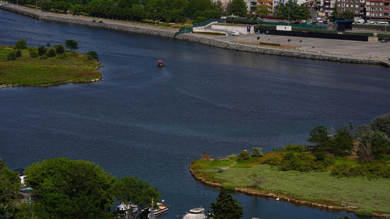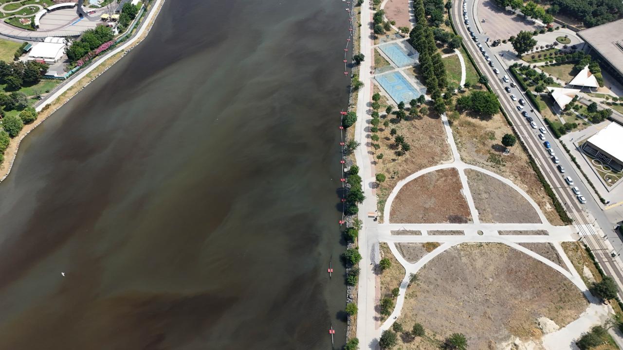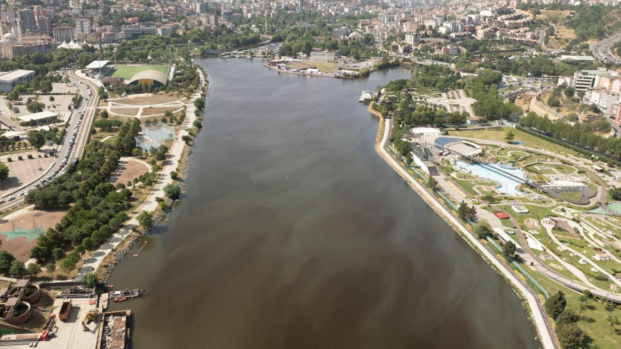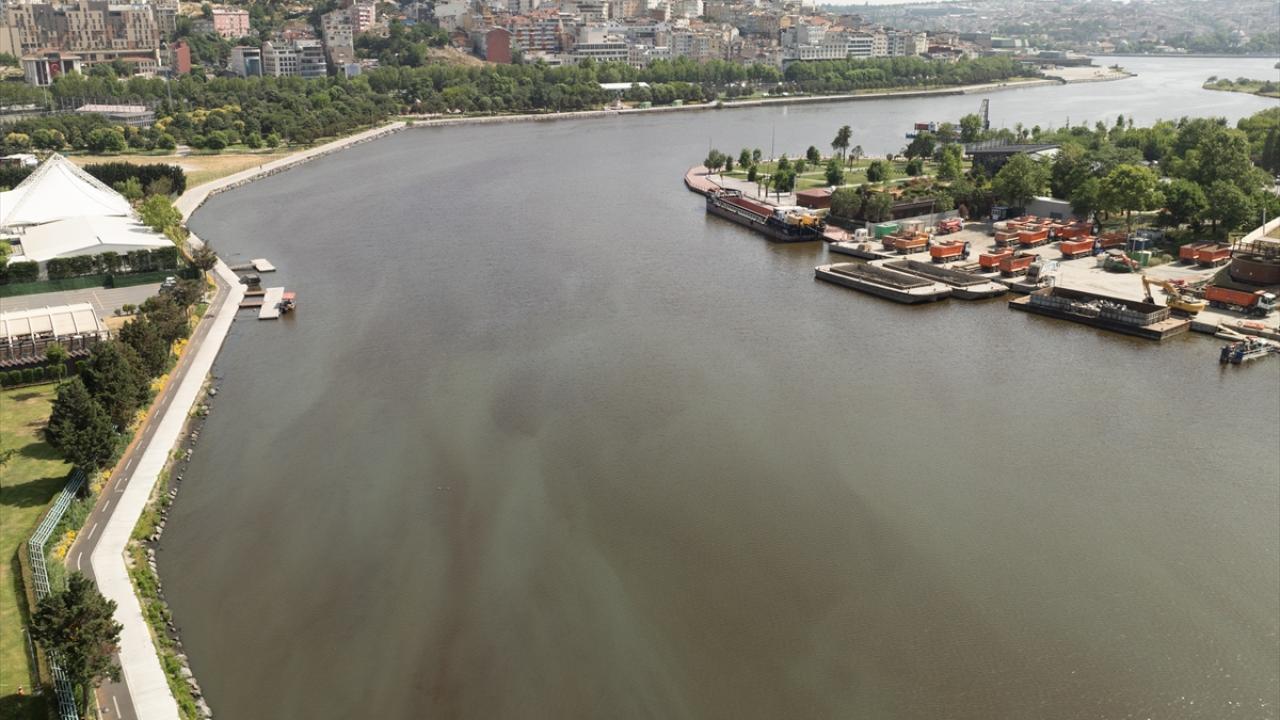 Havadan da görüntülenen Haliç`teki renk değişimi dikkati çekiyor.