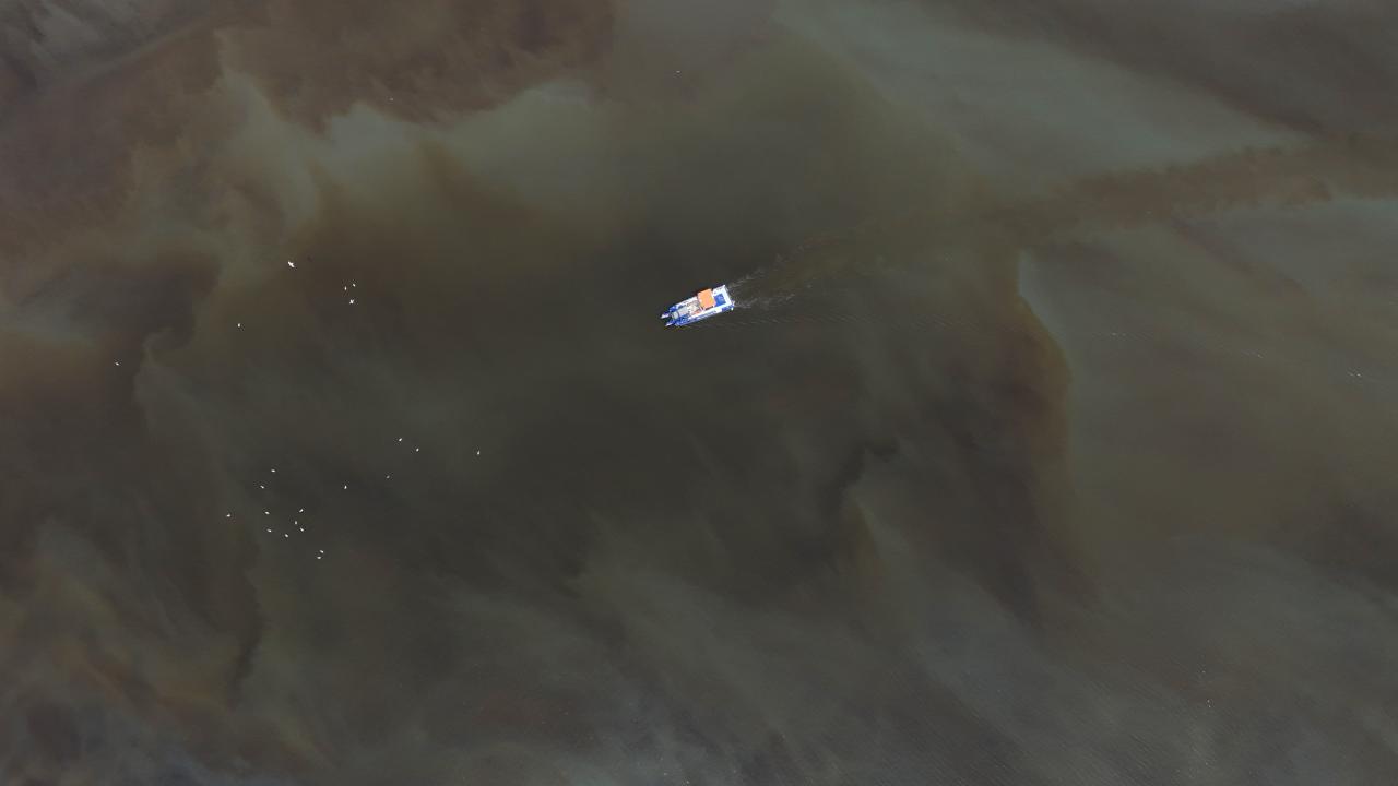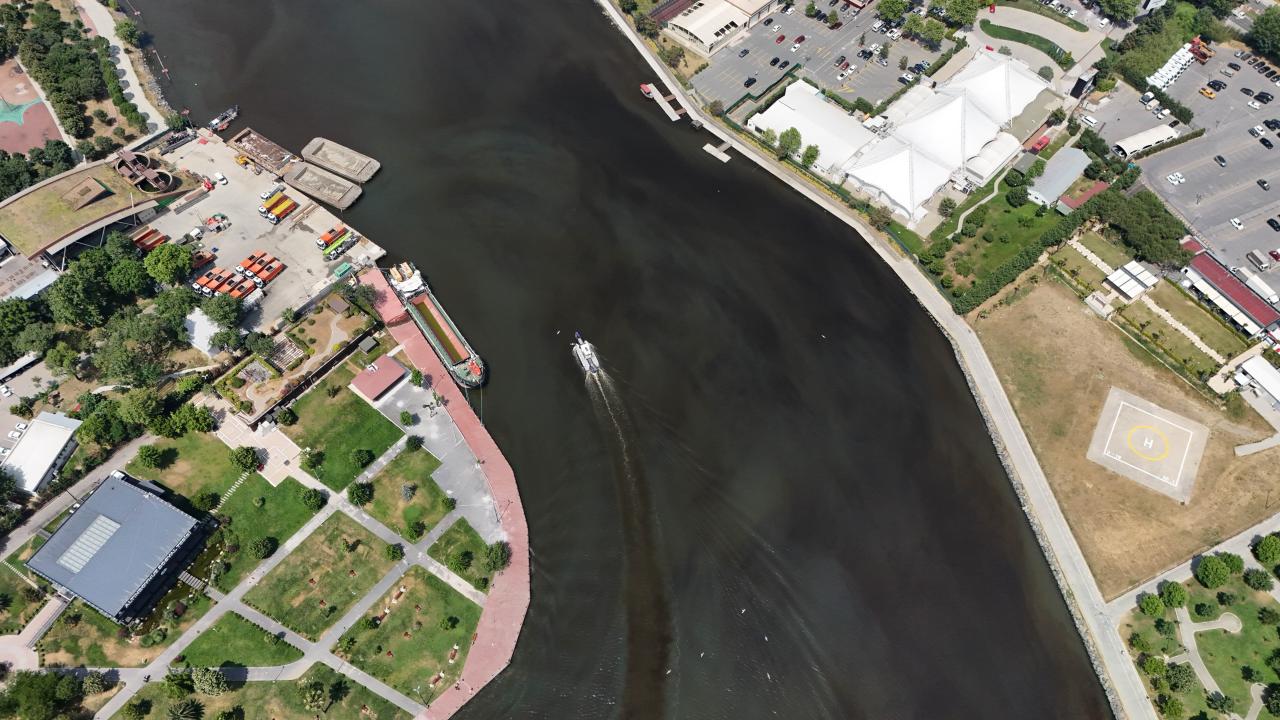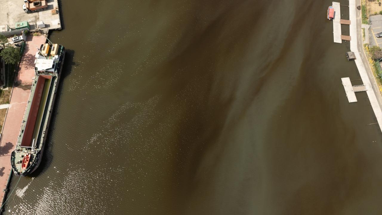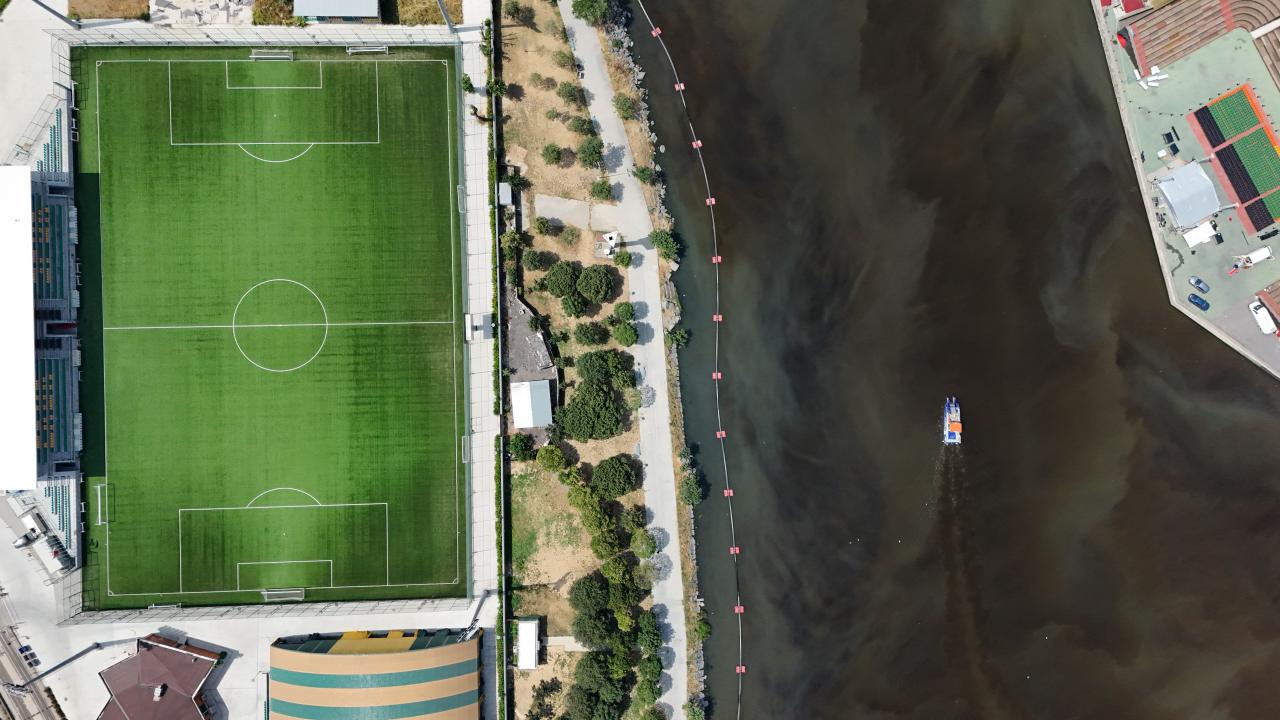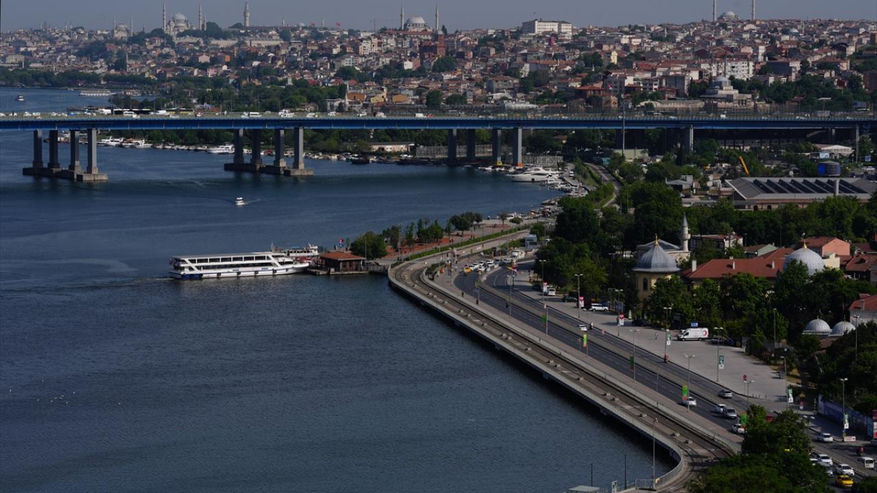 Havadan da görüntülenen Haliç`teki renk değişimi dikkati çekiyor.
