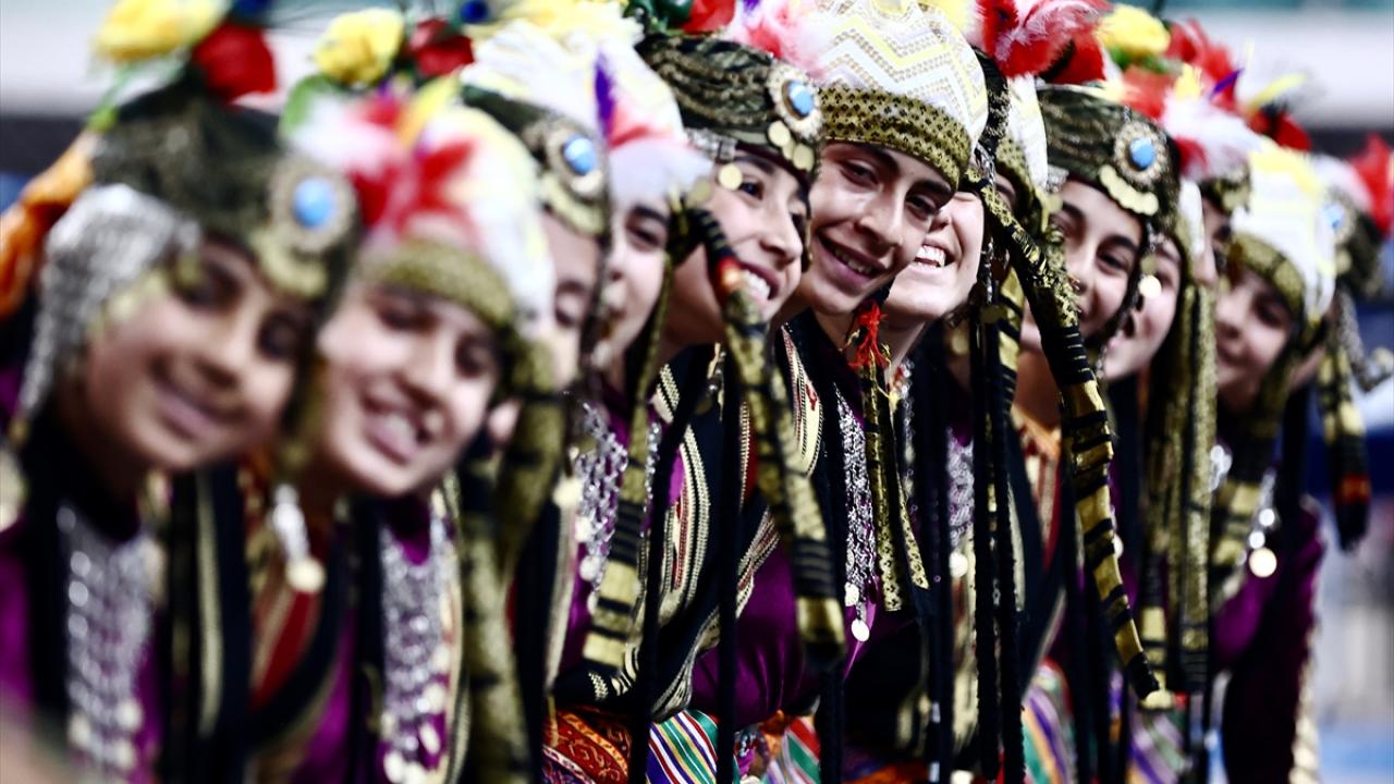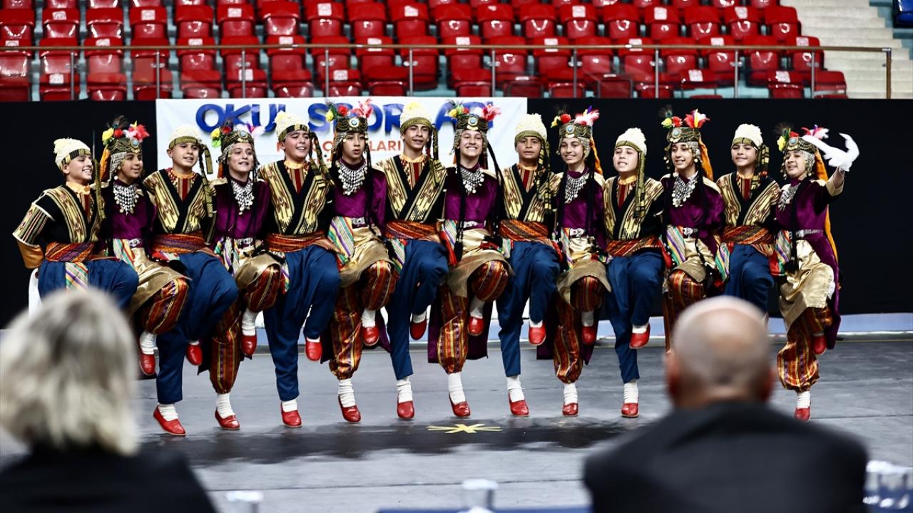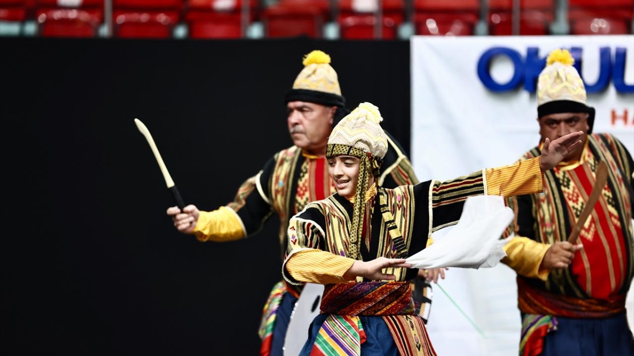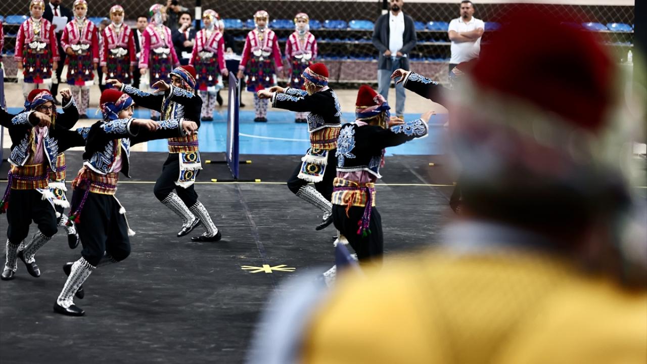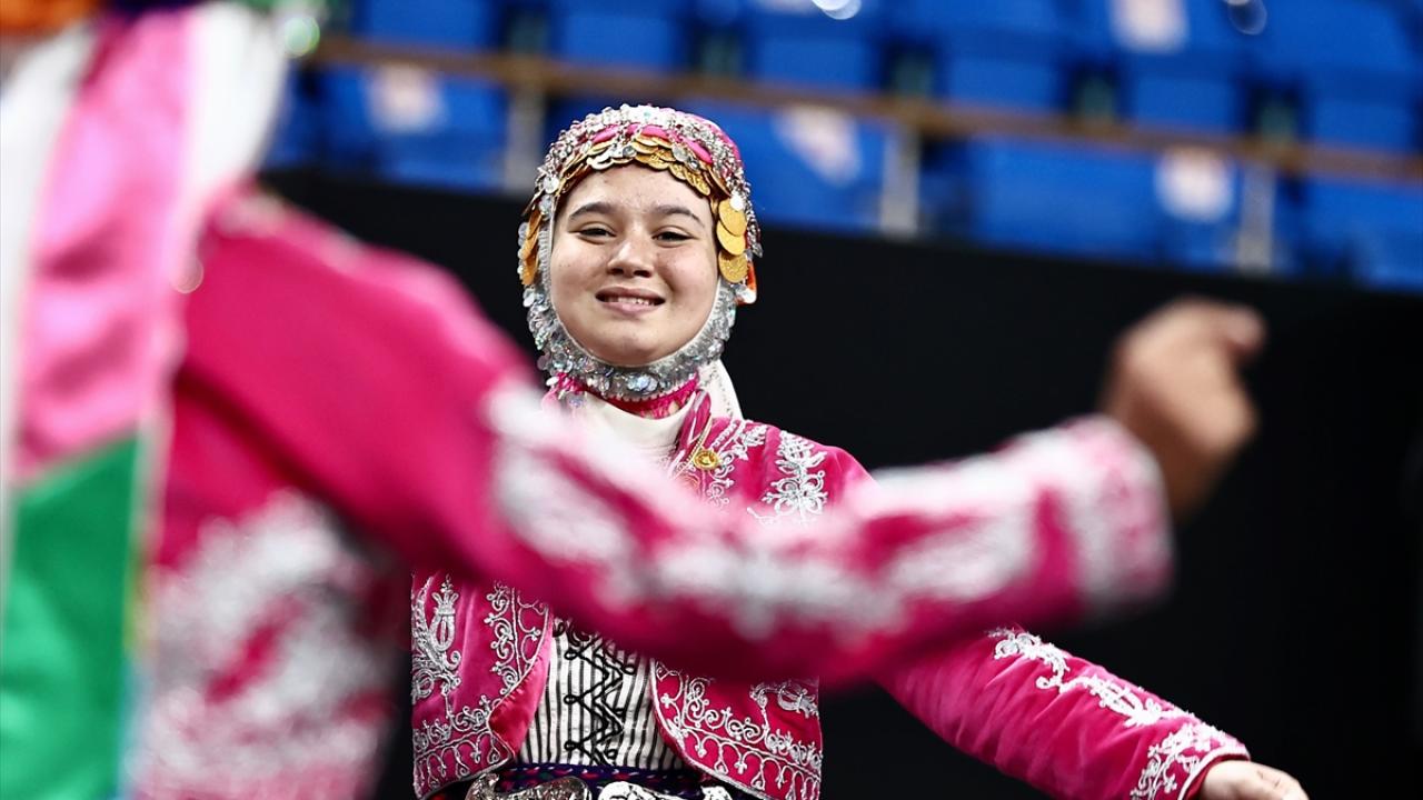 Bahçeşehir Spor Salonu`nda 22 ilden 700 öğrencinin katıldığı şampiyonada, yöresel kıyafetleriyle sahneye çıkan ekipler halk oyunları sergiledi.