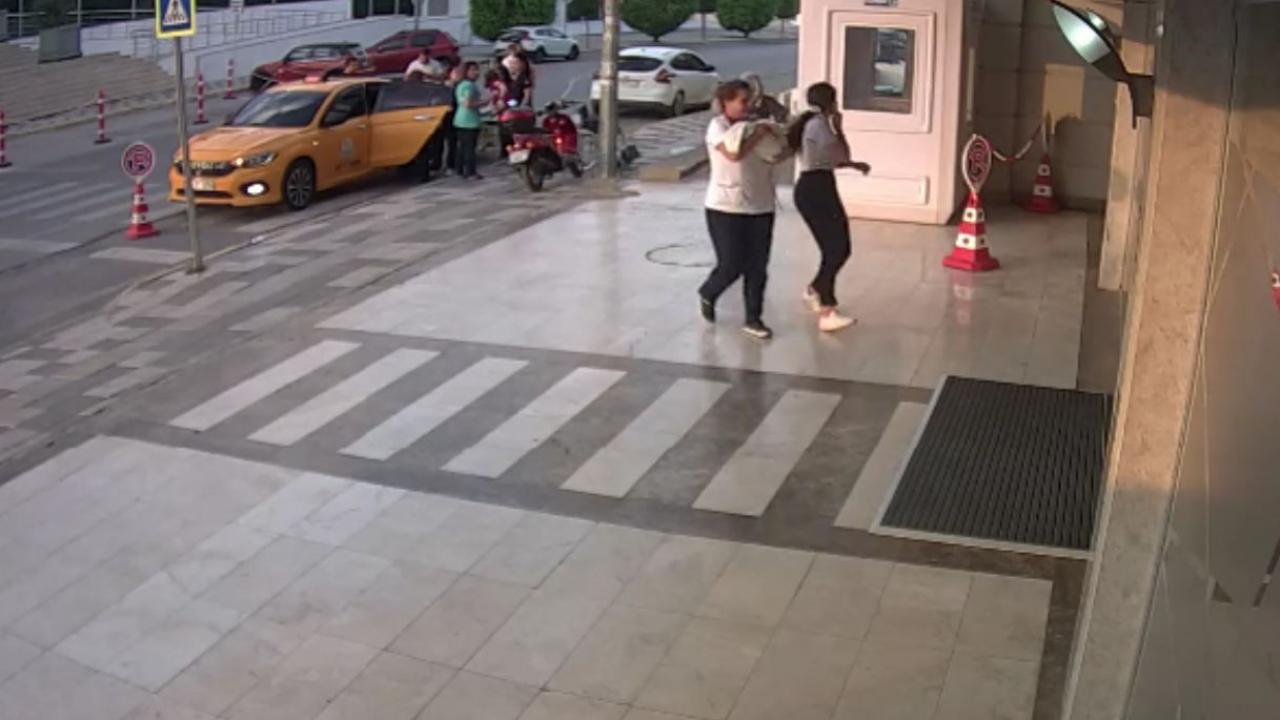 Kamera kayıtlarında, taksinin hastane kapısına gelişi, hemşirelerin koşturması ve ardından bir hemşirenin taksiden aldığı bebeği hastaneye götürmesi görülüyor.