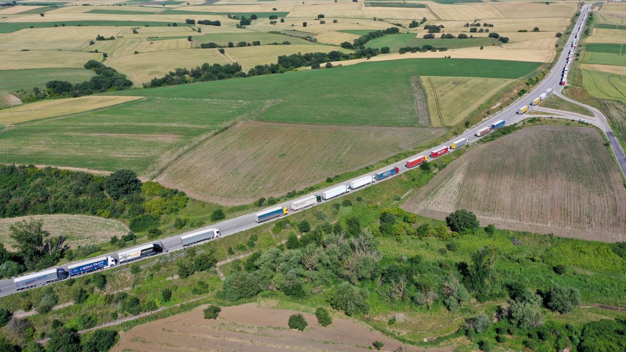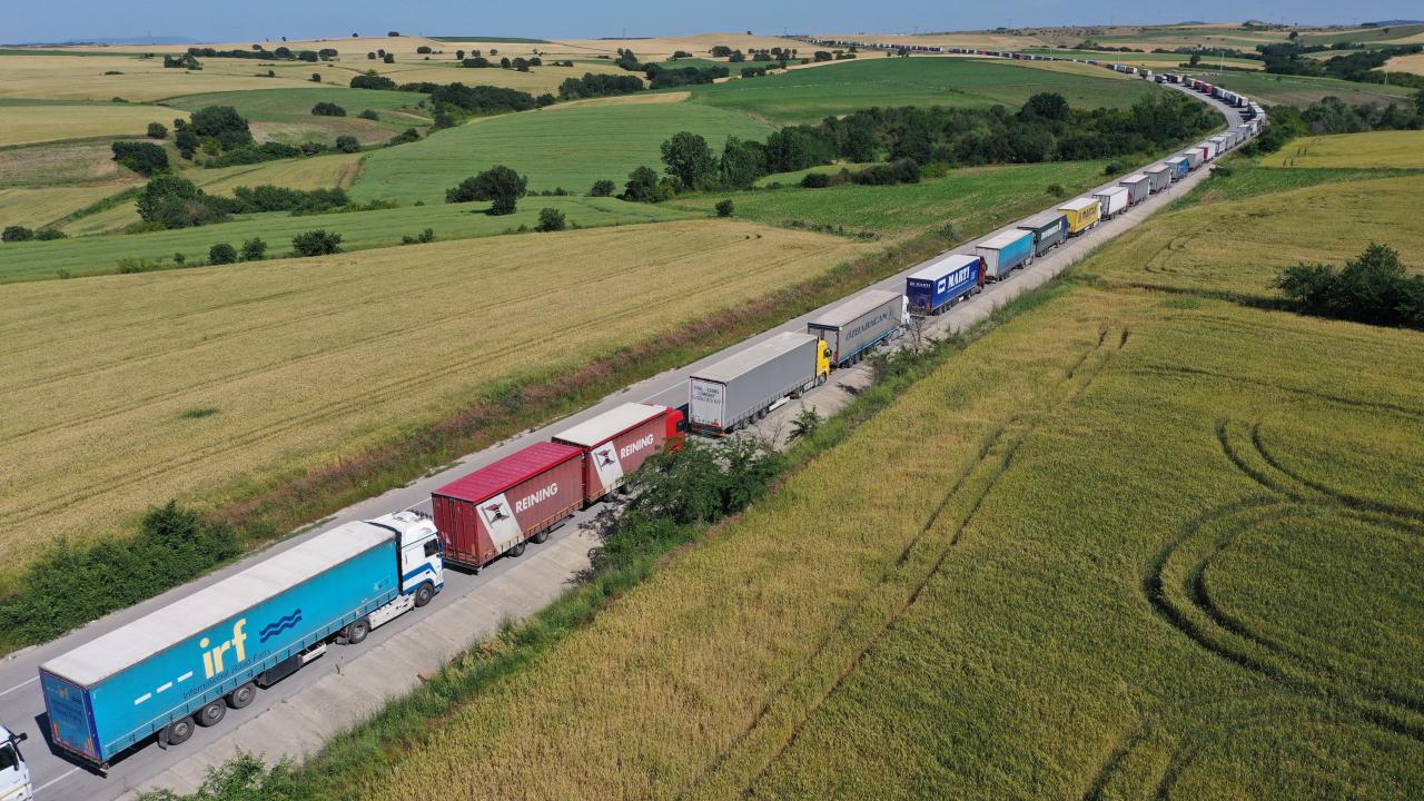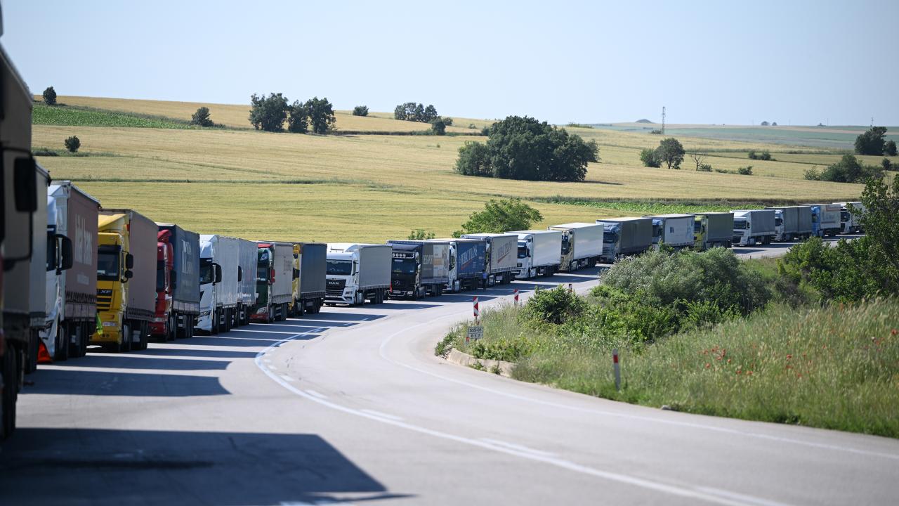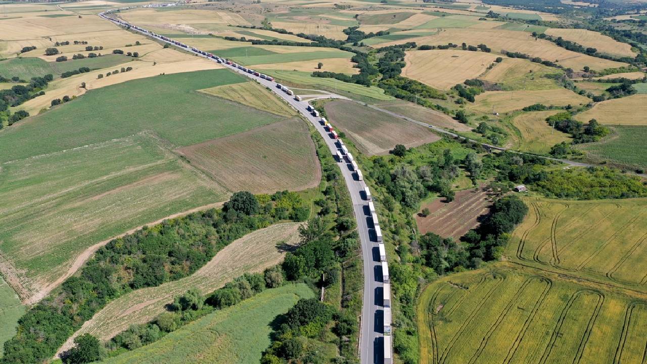 Hamzabeyli Sınır Kapısı`nda Avrupa’ya geçiş için yüzlerce tır sürücüsü araçlarında bekliyor.