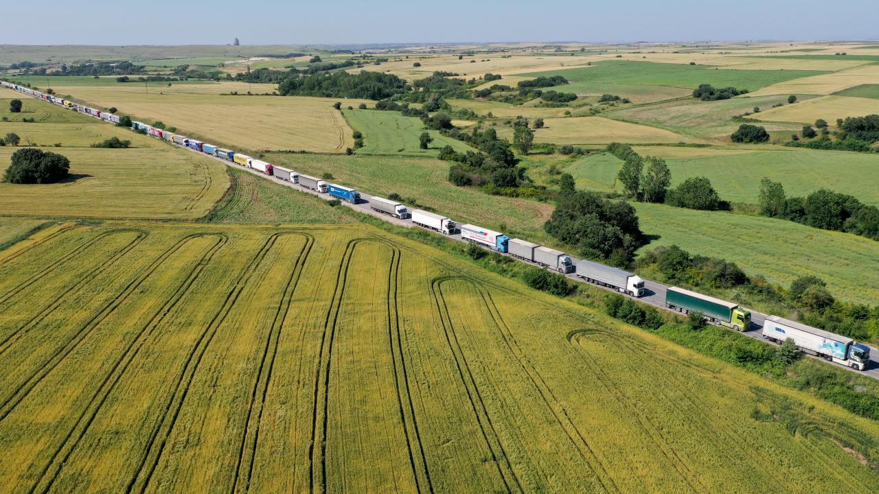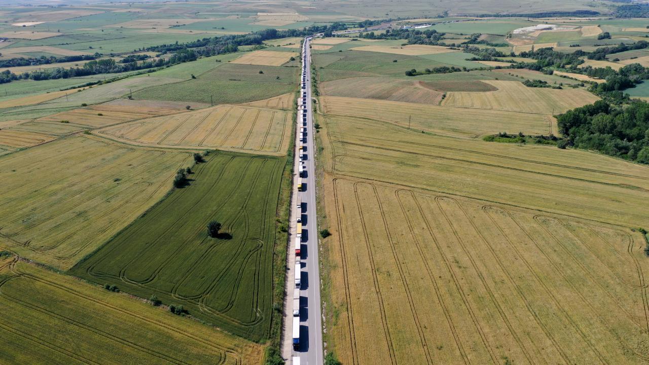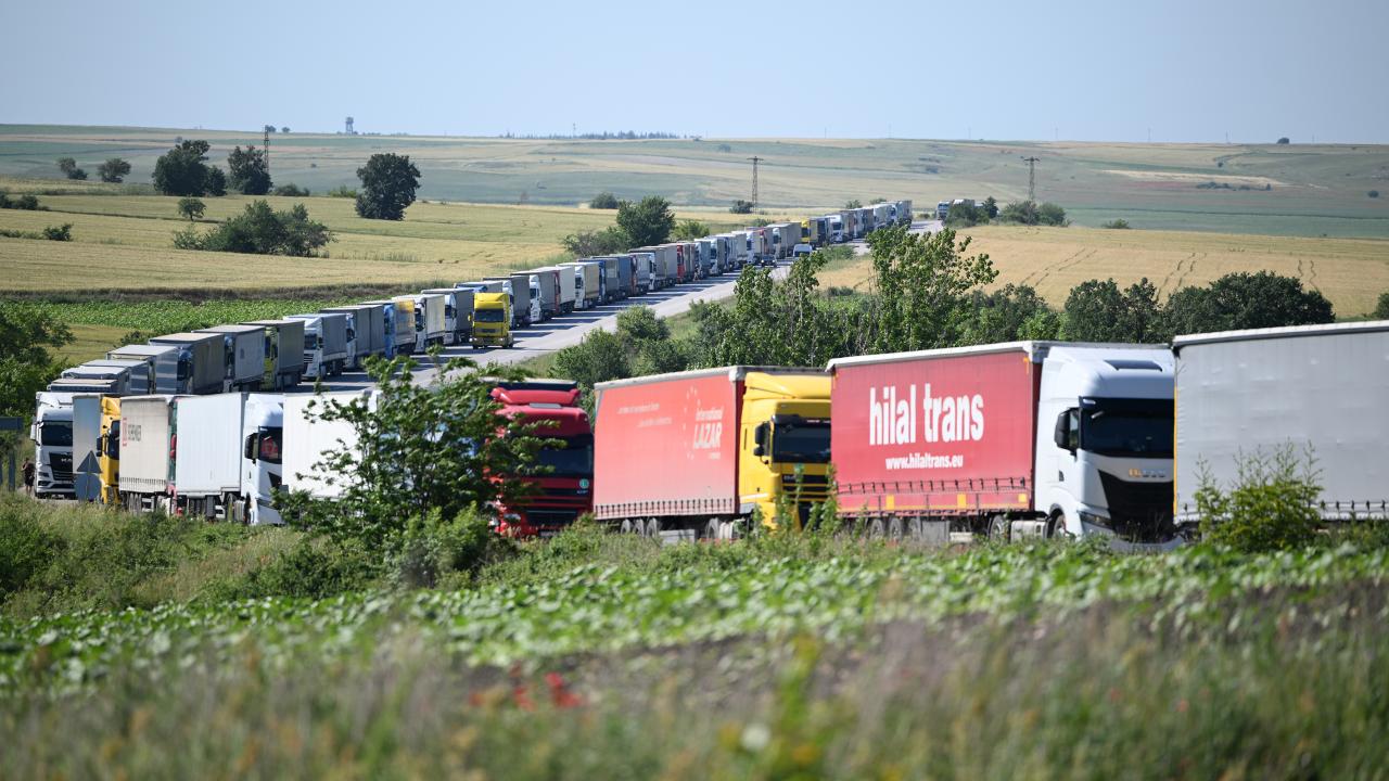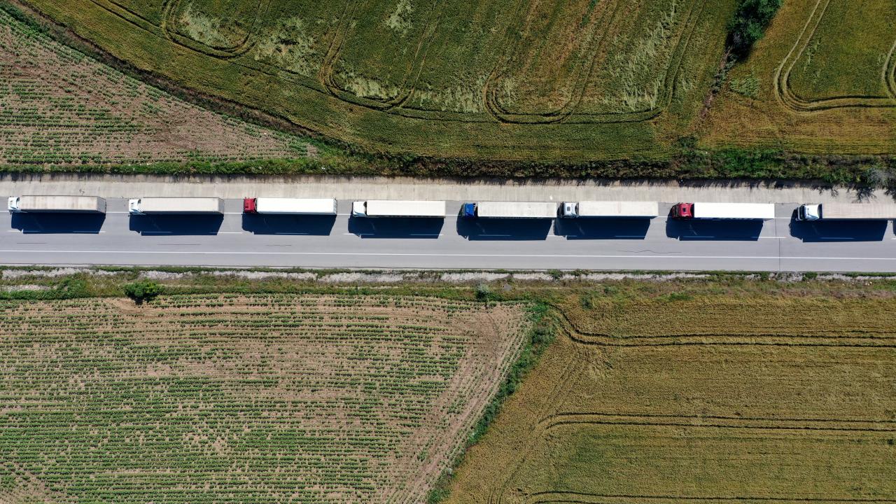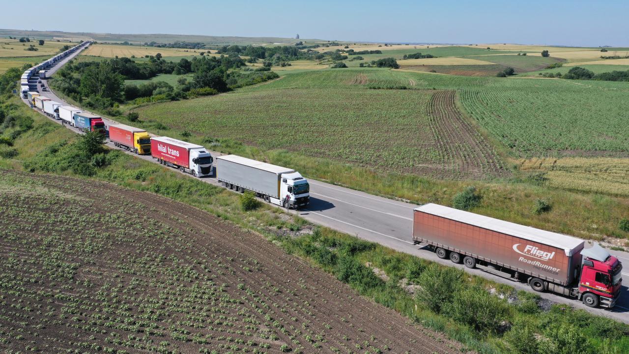Hamzabeyli Sınır Kapısı`nda Avrupa’ya geçiş için yüzlerce tır sürücüsü araçlarında bekliyor.