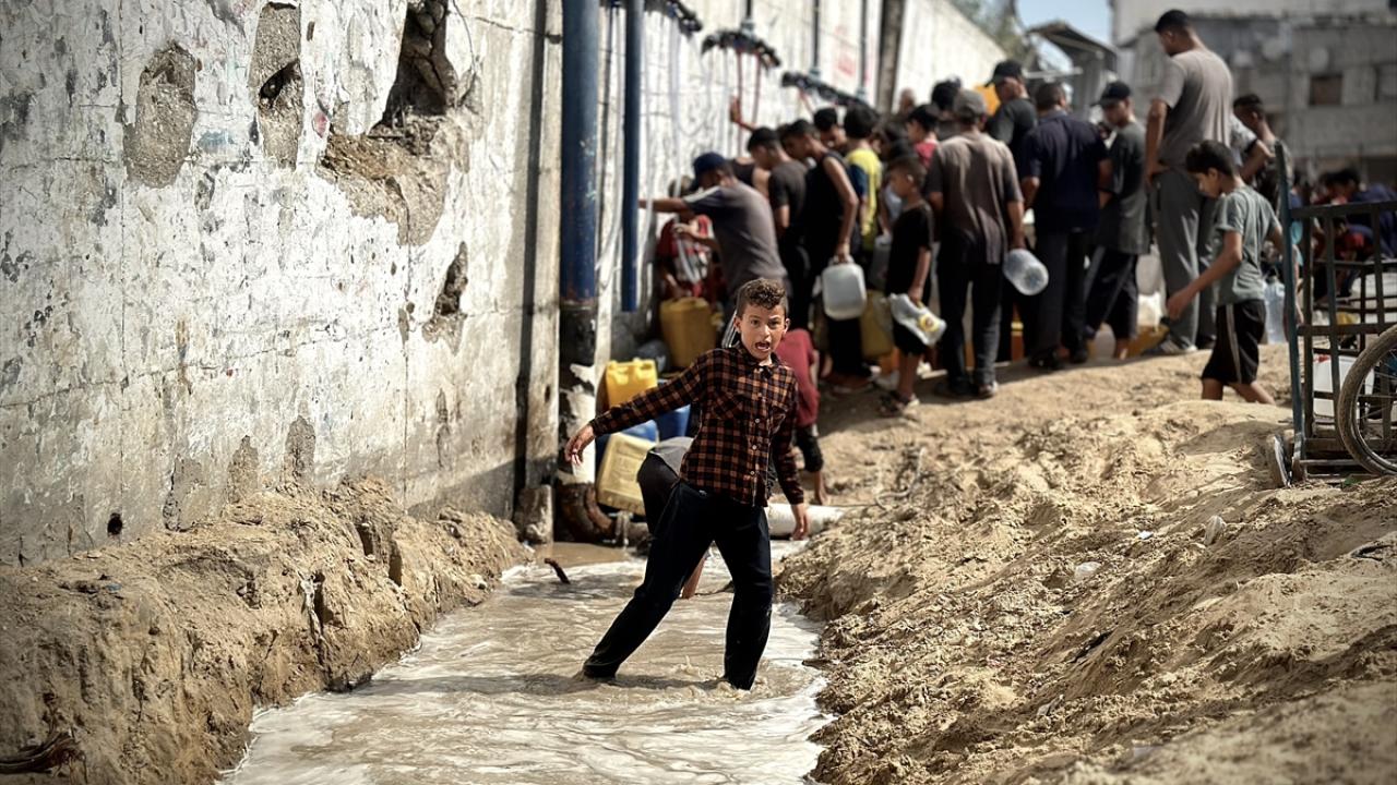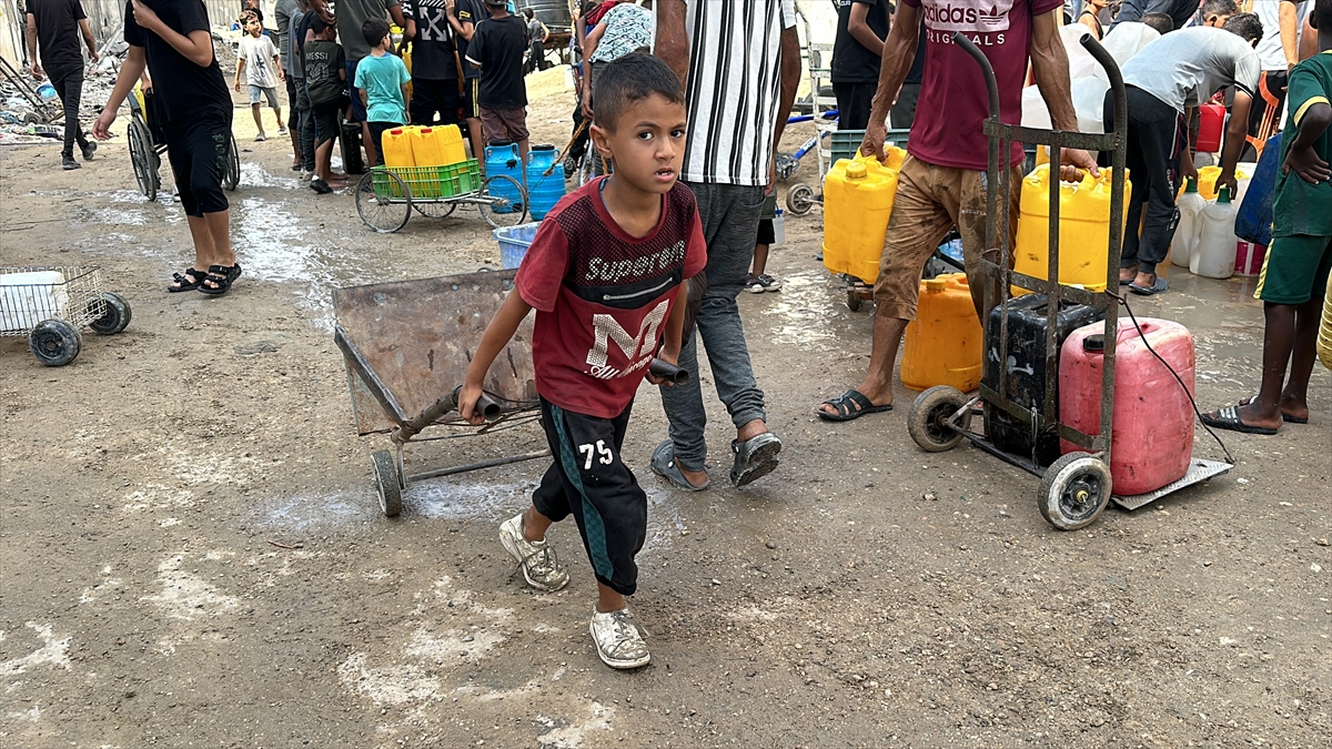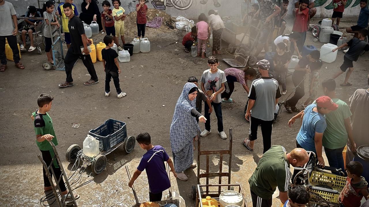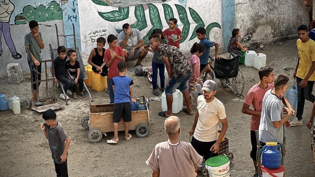 İsrail'in abluka altındaki Gazze Şeridi'ne yönelik aylardır devam eden saldırılar nedeniyle bölgede su krizi yaşanıyor. Gazze Şeridi'nin güneyinde yer alan Han Yunus kentinde, Han Yunus Belediyesi tarafından temiz su dağıtıldı. Bölgedeki Filistinliler dağıtılan suyu almak için kuyruk oluşturdu.
