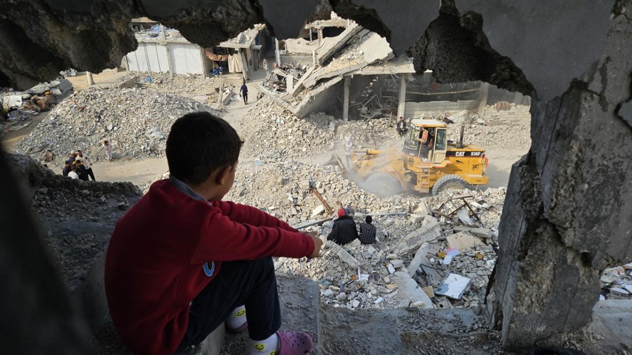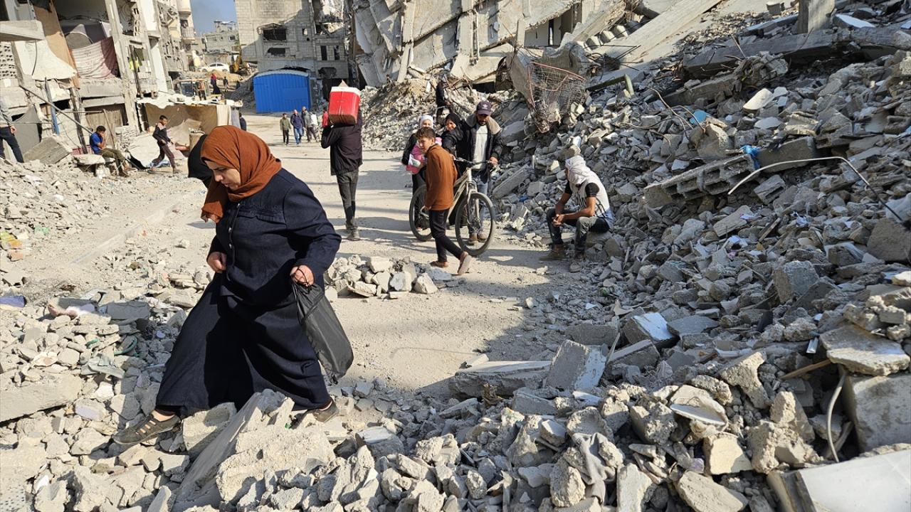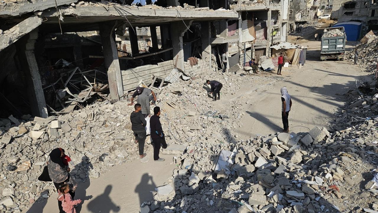Gazze Şeridi'nin güneyinde yer alan Han Yunus kentinde, İsrail saldırıları nedeniyle yıkılan binaların kalıntıları, kenti enkaz yığınına çevirdi.