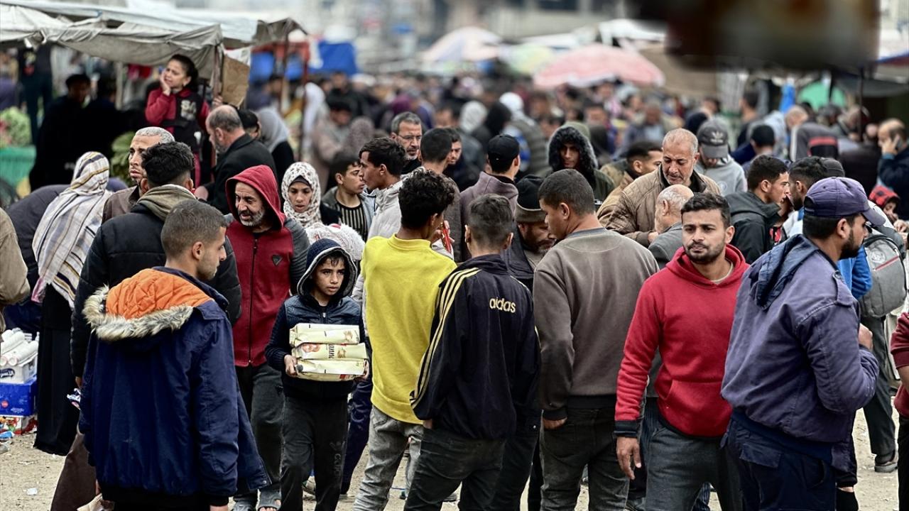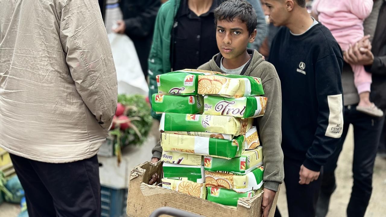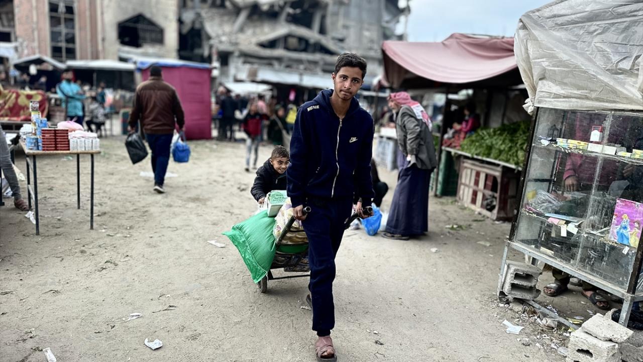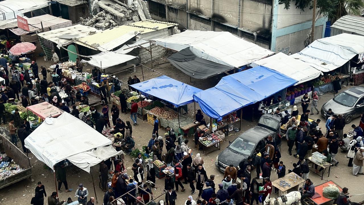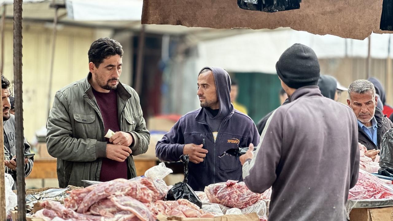 Hamas ve İsrail arasında mutabakata varılan Gazze'de ateşkes ve karşılıklı esir takası anlaşması yürürlüğe girmesinin ardından, Mısır tarafından bekletilen ürünlerin girişine izin verilmesiyle Gazze Şeridi'nin güneyindeki Han Yunus kentinde bulunan Zahra Pazarı'nda hareketlilik yaşandı.