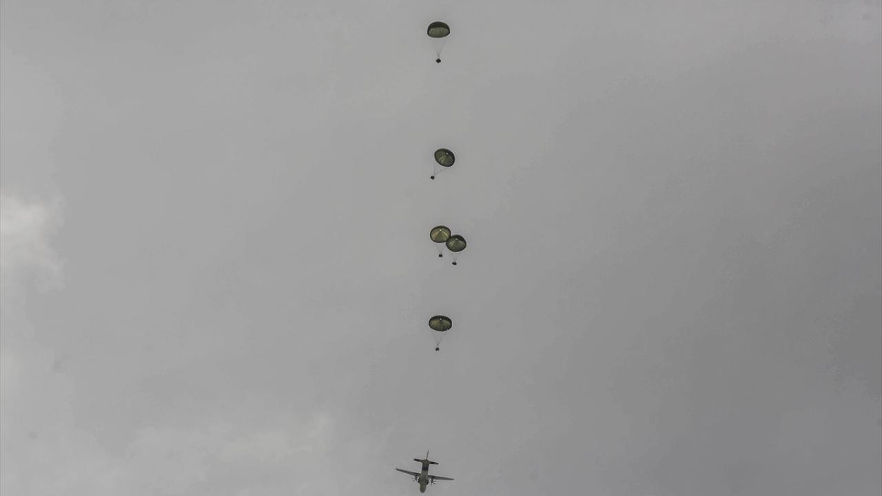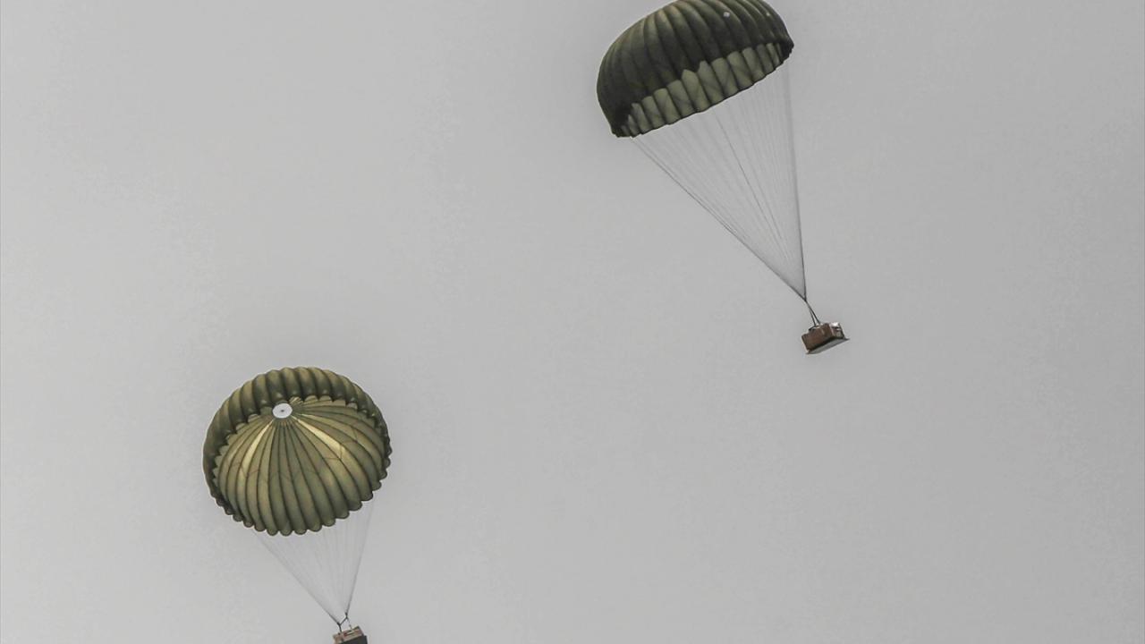 Han Yunus'a havadan insani yardım malzemeleri indirildi