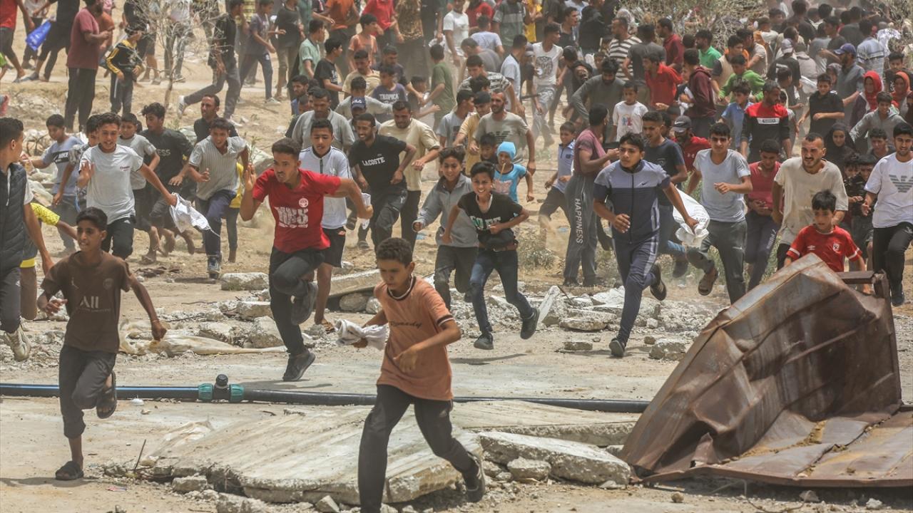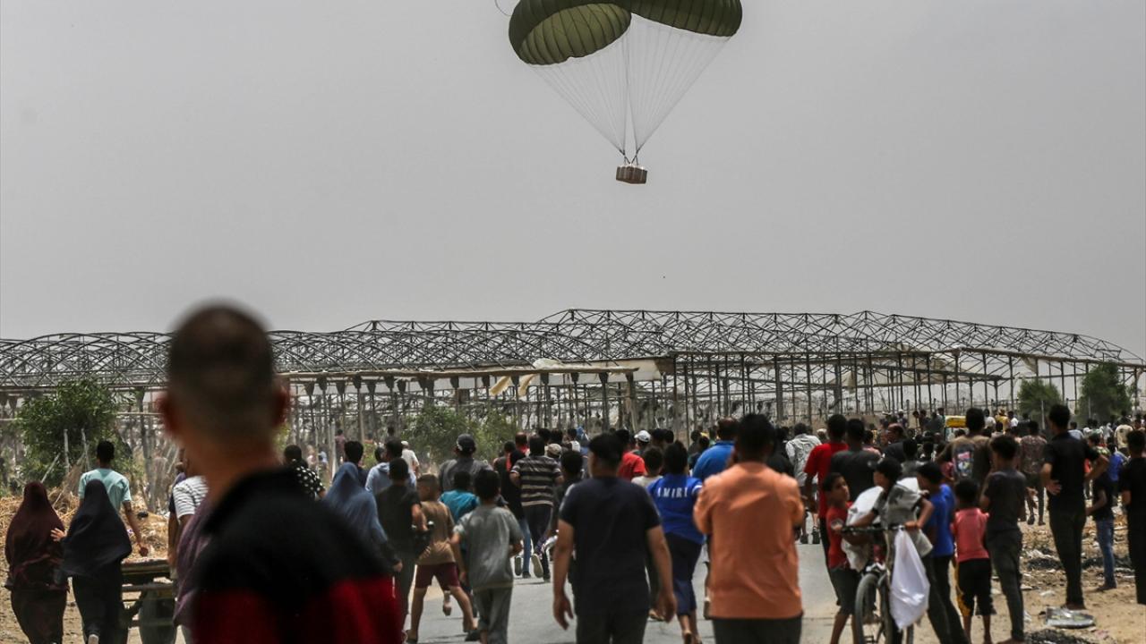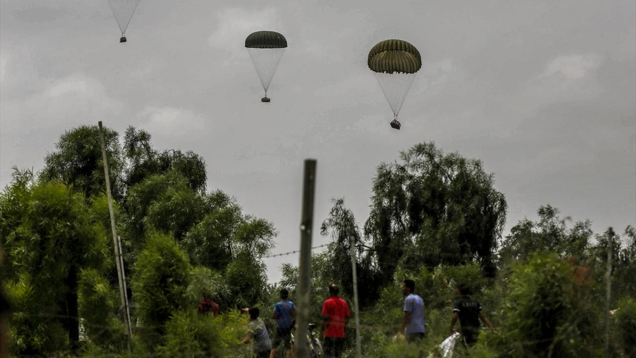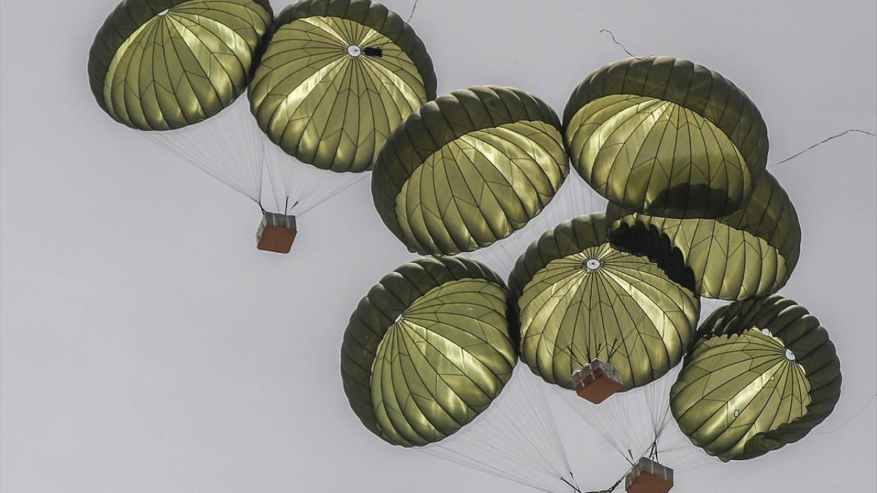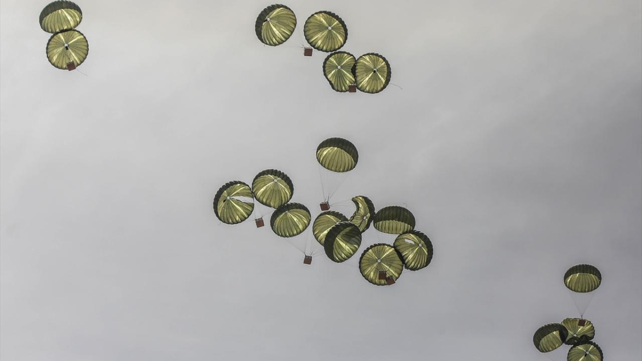 İsrail saldırıları altındaki Gazze'nin Han Yunus kentindeki El-Mevasi bölgesine havadan insani yardım malzemeleri indirildi.
