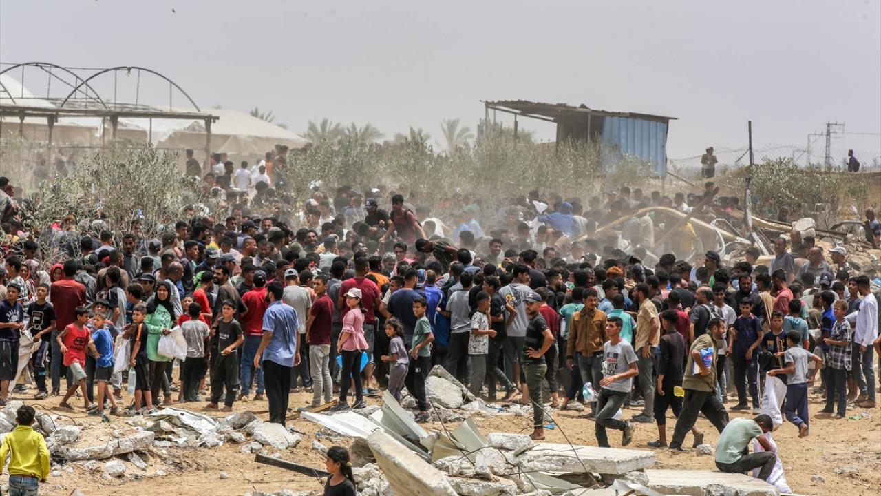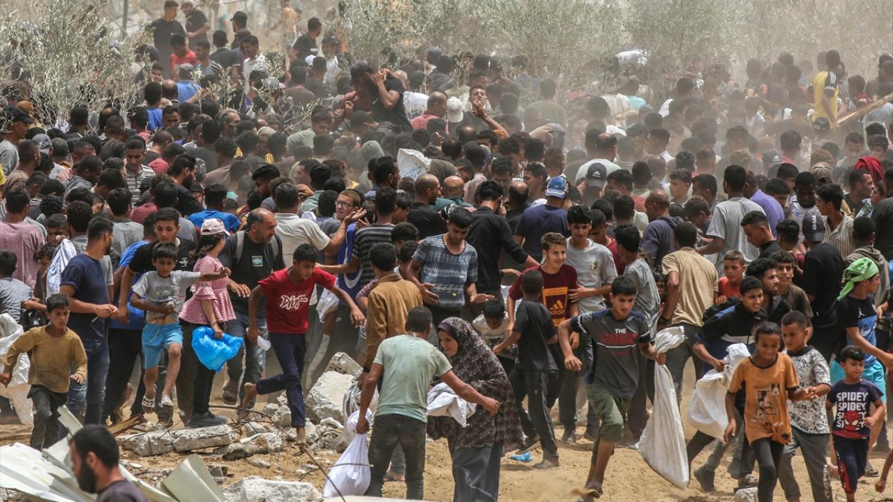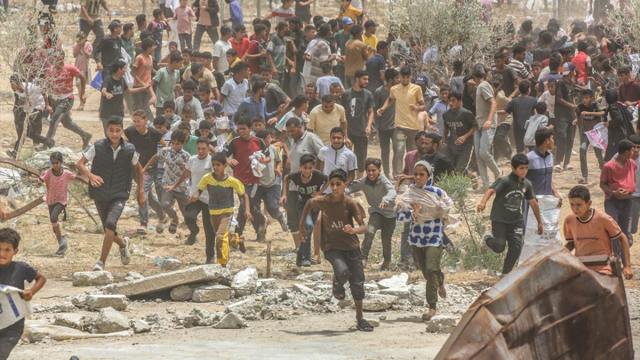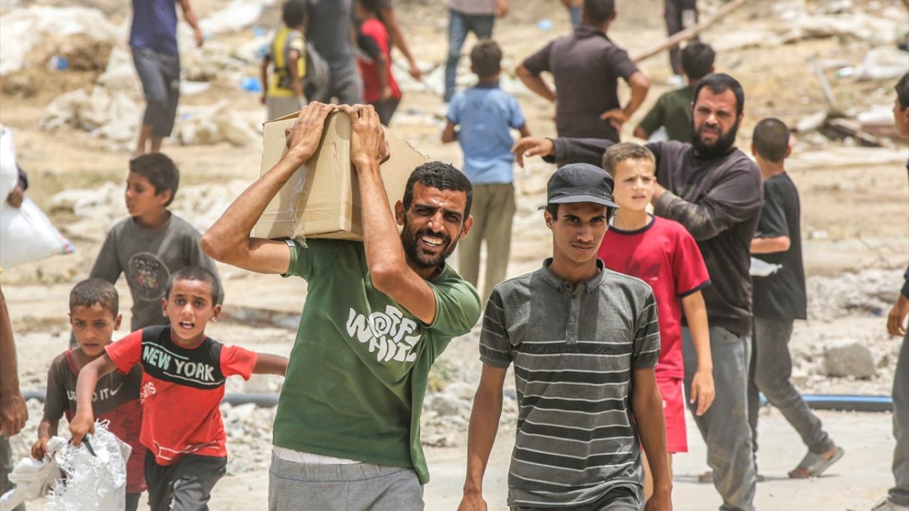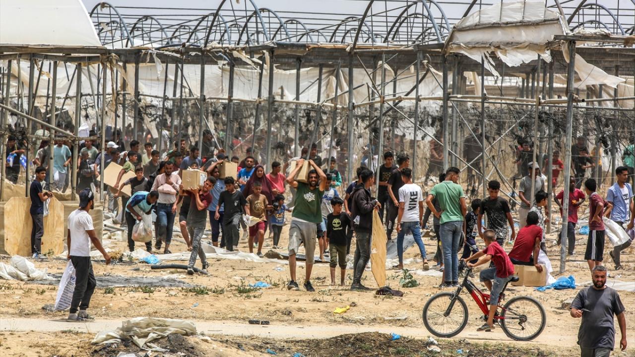 İsrail saldırıları altındaki Gazze'nin Han Yunus kentindeki El-Mevasi bölgesine havadan insani yardım malzemeleri indirildi.